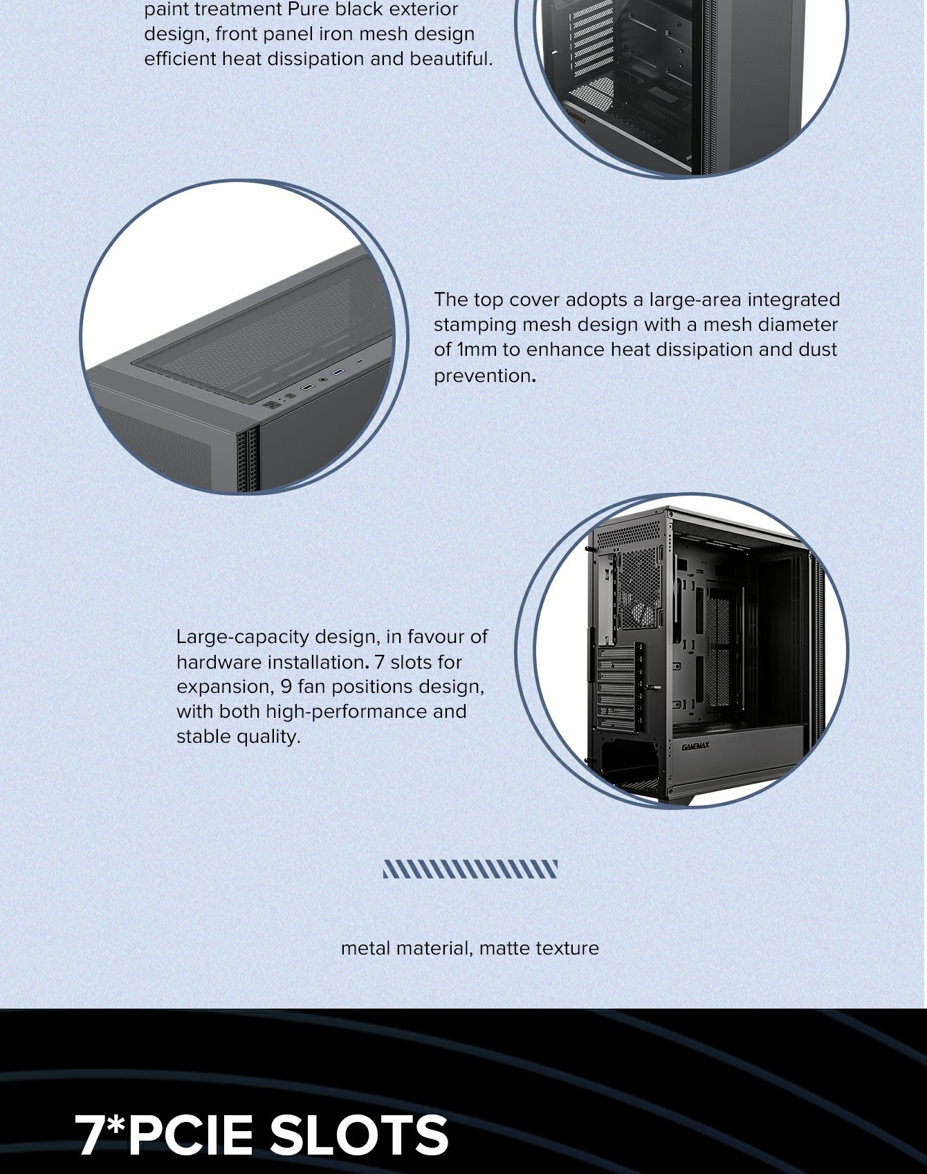 • Cooling Efficiency - Comes with a pre-installed 120mm black fan and supports up to eight additional fans (front, top, PSU cover)