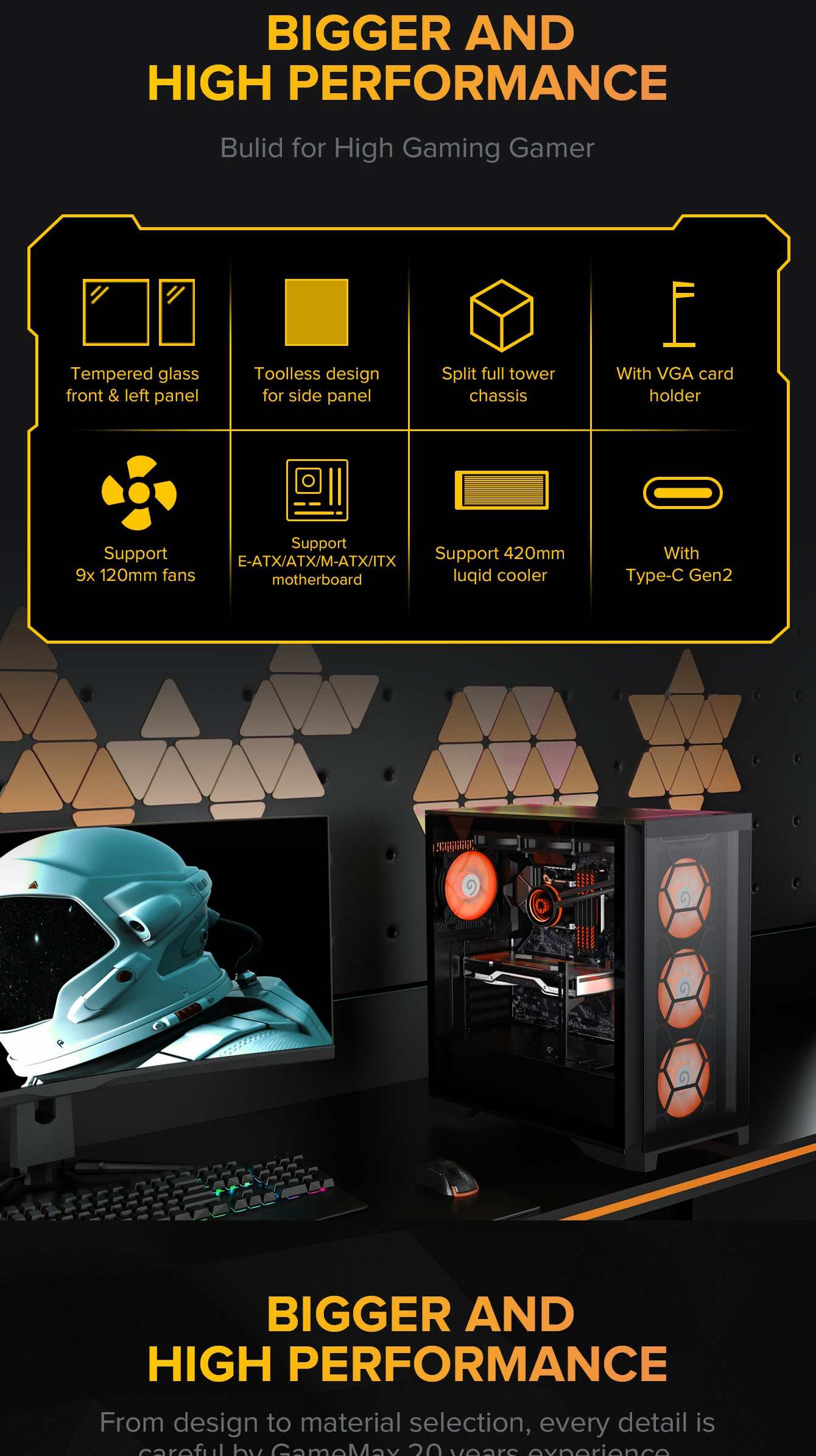 Leader TG E-ATX Full Tower Gaming PC Case with GameMax ARGB Fans