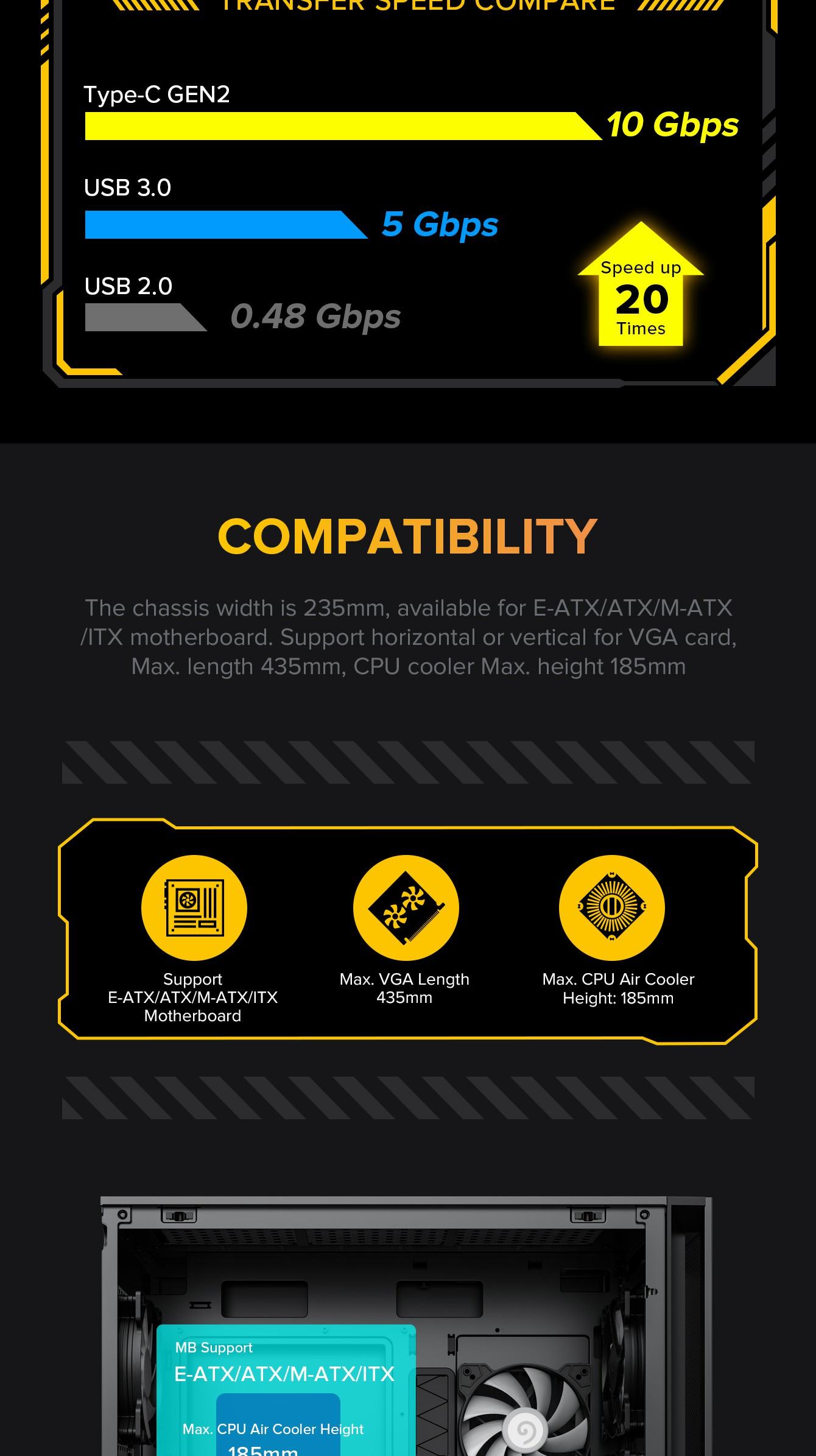 | SPS Length | up to 290mm(front cover w/o Water Cooling) | |