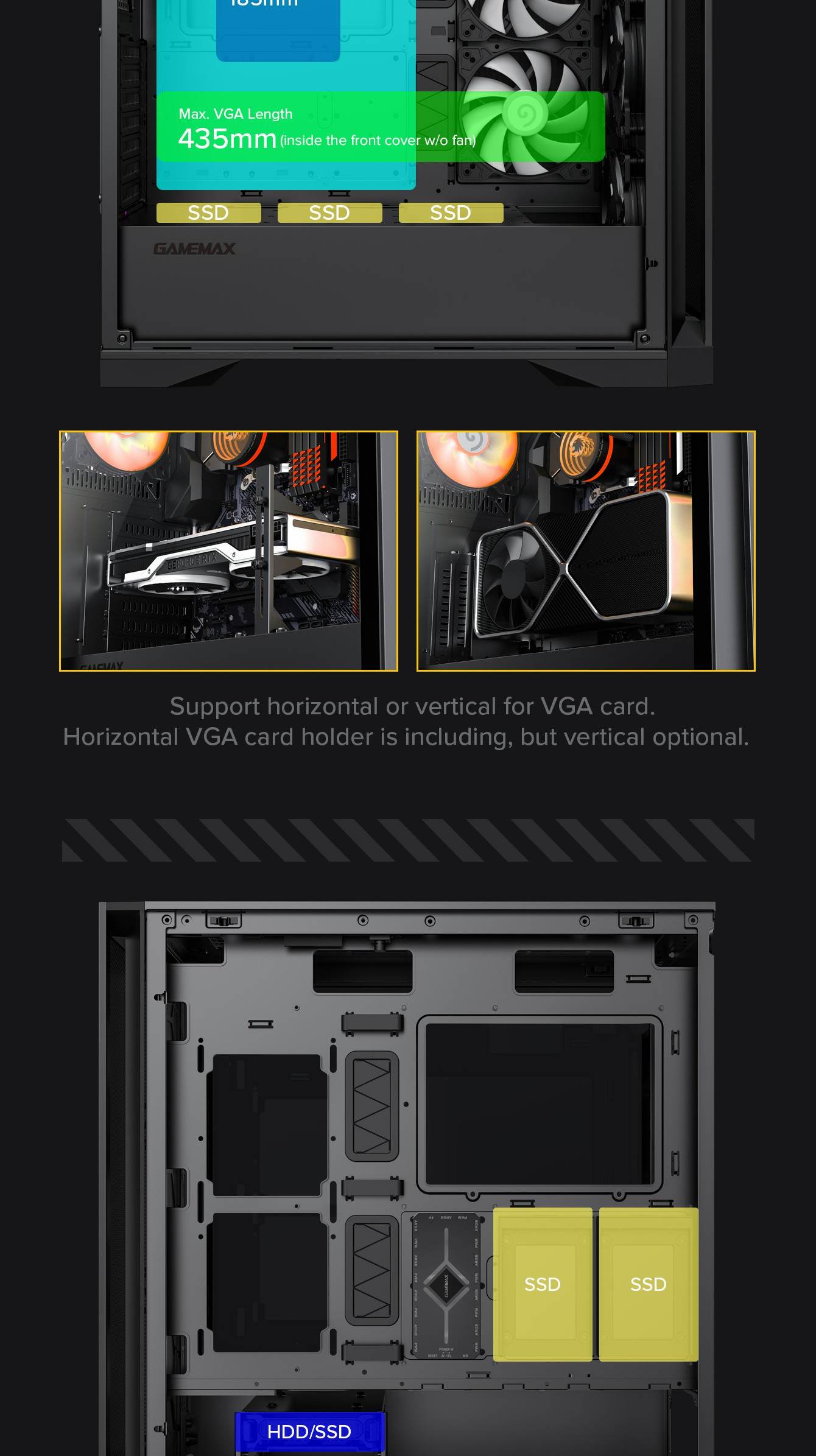 | VGA Card Length | up to 410mm(front cover w/o fan) (Vertical graphics card support) | |