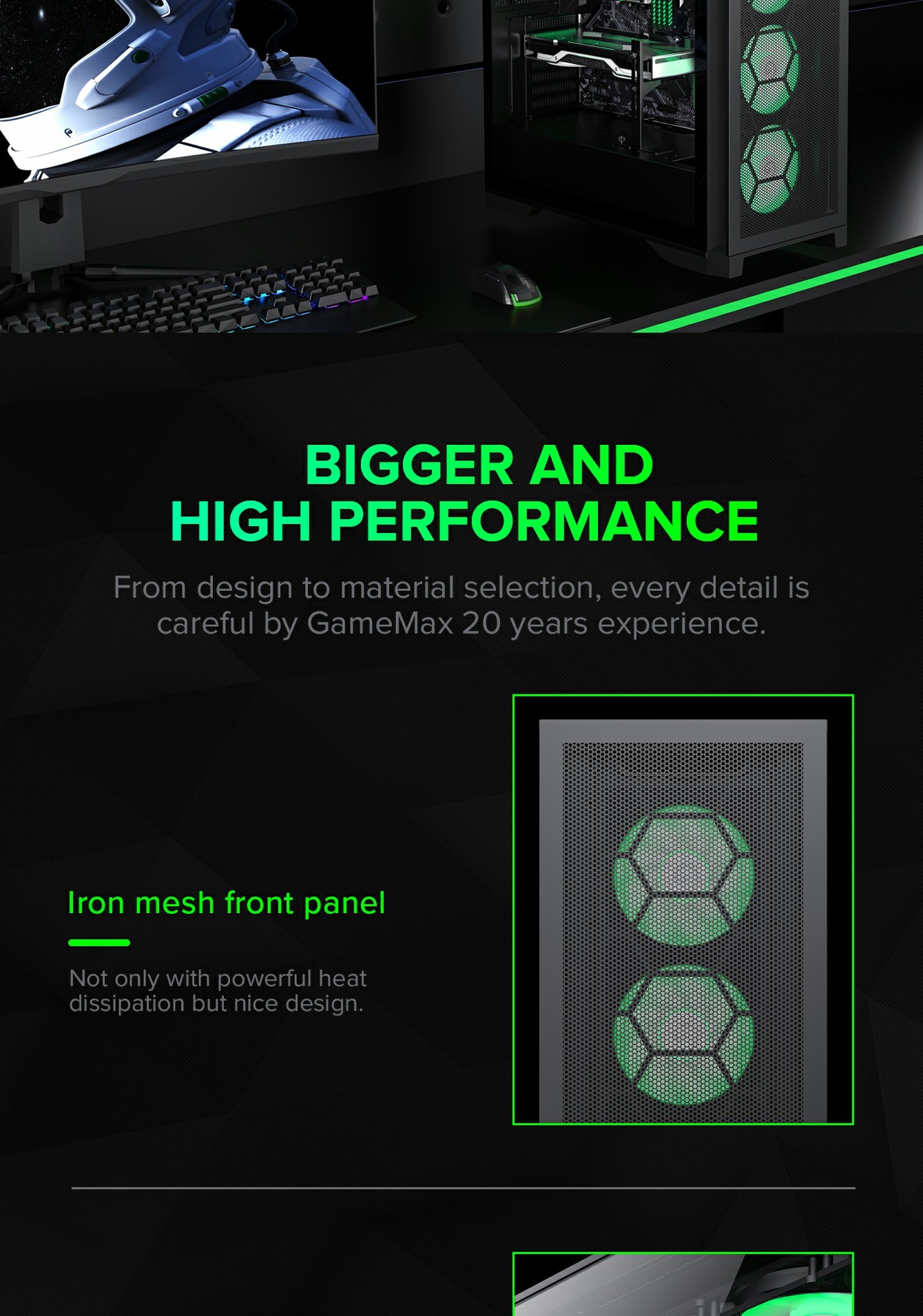 • 6 Pre-installed ARGB Fans: Lighting control with 16.8 million colors and adjustable speed for silent cooling.
