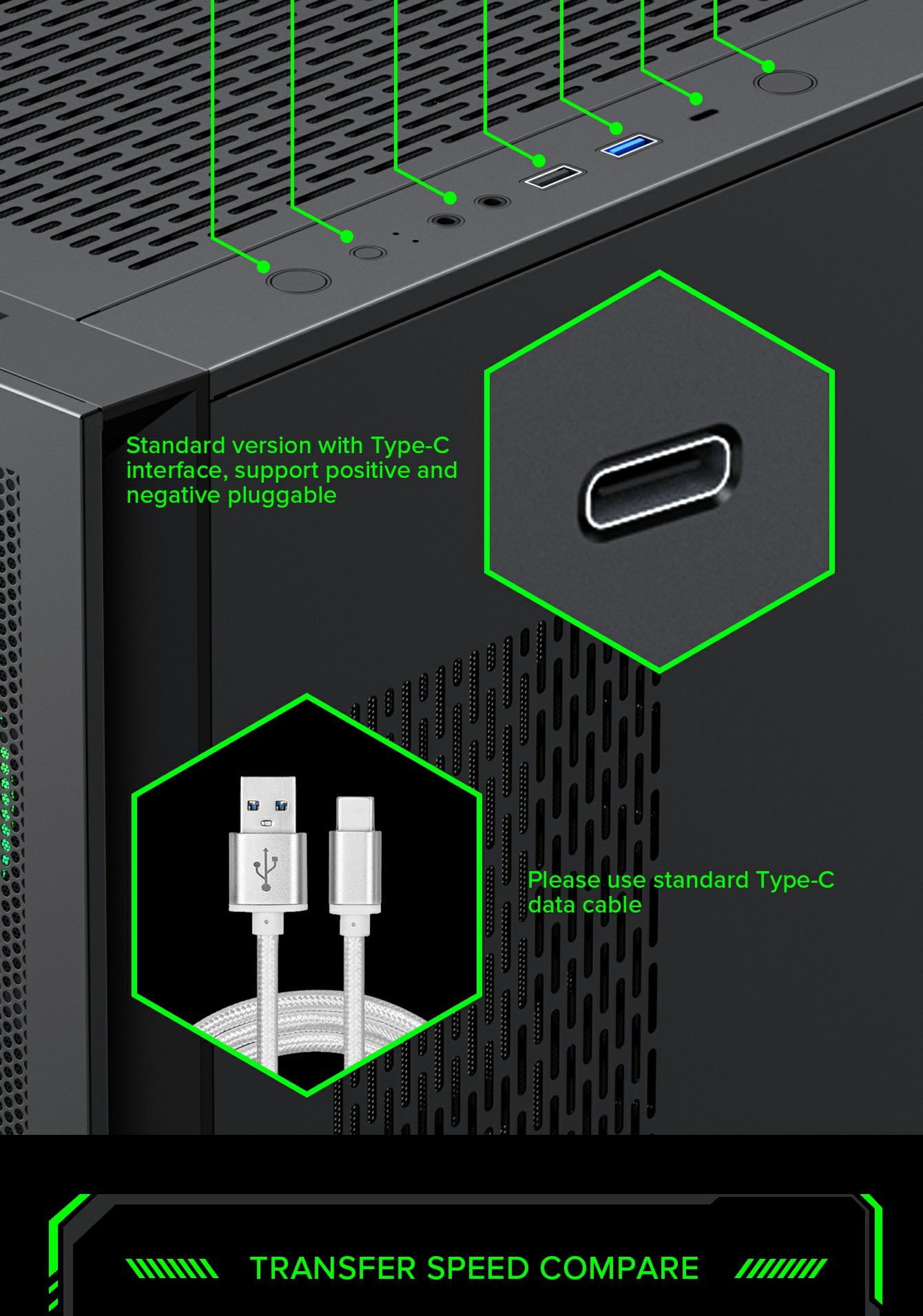 • Versatile I/O Panel: Includes a Type-C Gen2 2x2 port for fast transfers and multiple ports for accessories.