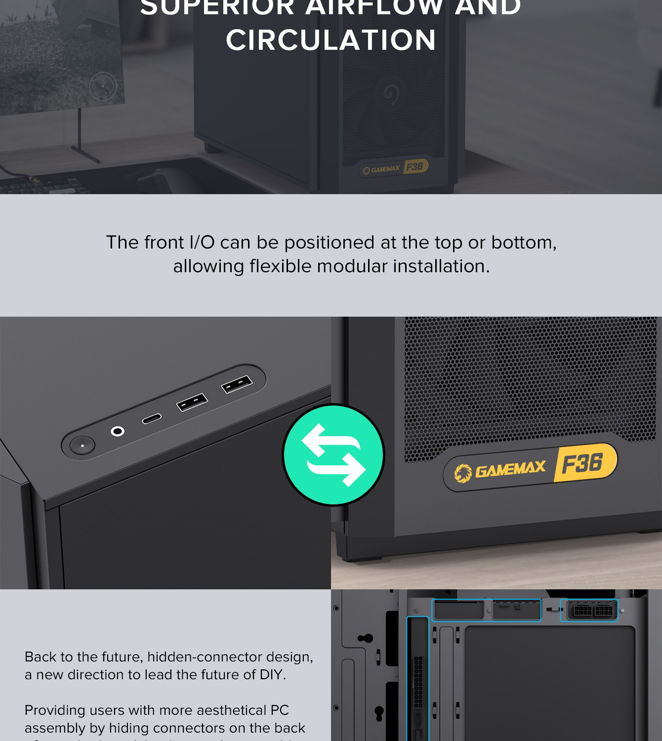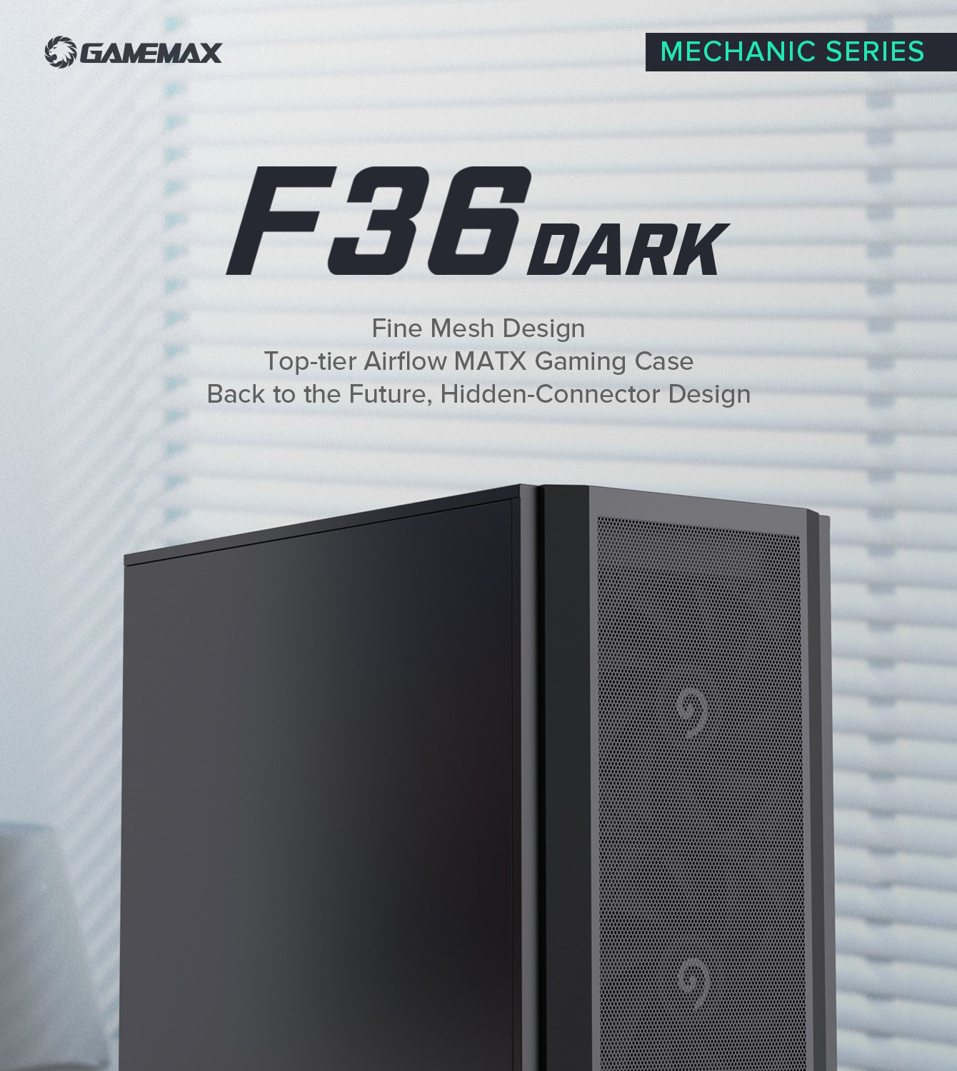 GameMax F36 Dark Caja Gaming Micro-ATX, Una caja premium elegante, optimizada para flujo de aire y fácil de instalar, con un marco de acero duradero y vidrio templado de 4,0 mm.