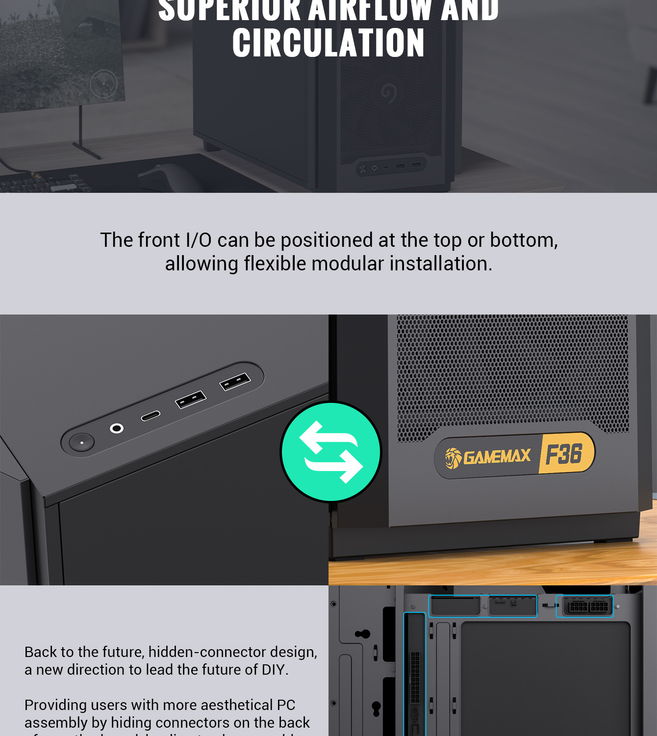 GameMax F36 Dark Micro-ATX Gaming Case: a sleek, airflow-optimized, and easy-to-install premium case featuring a durable steel frame and 4.0mm tempered glass.