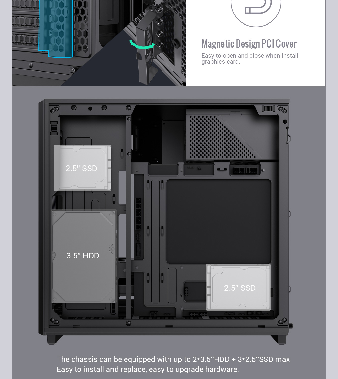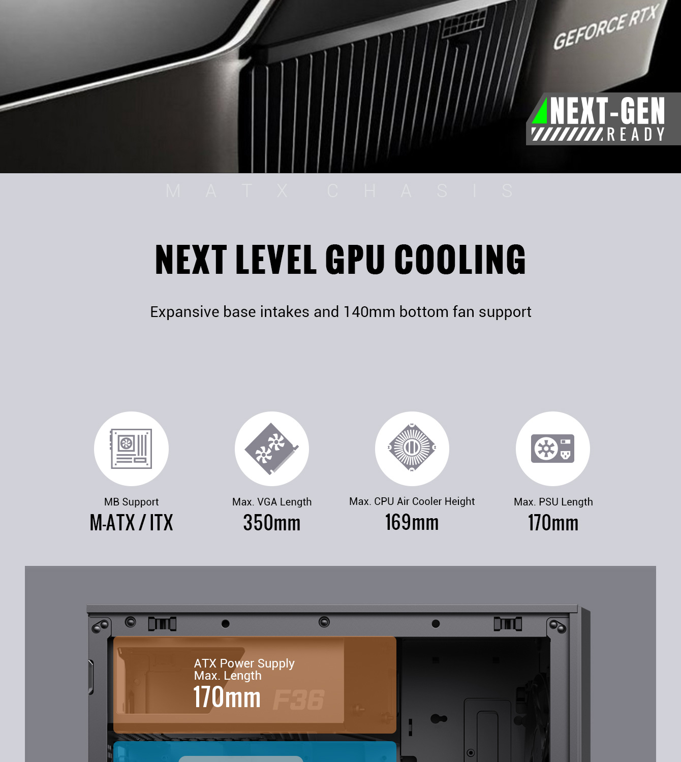 • Compatible with MATX motherboards and backplane configurations, with support for 4.5-slot graphics cards.