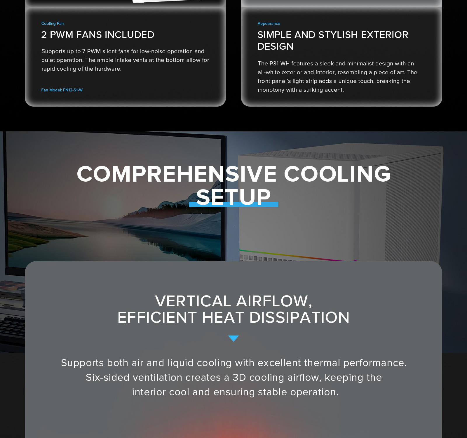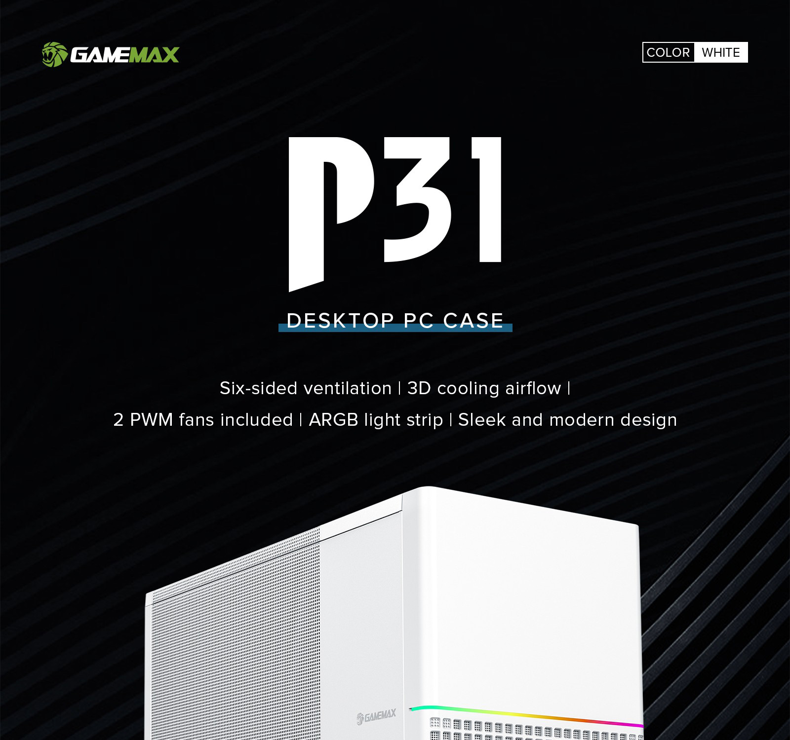 The GameMax P31 WH Mid Tower PC Case offers robust cooling capabilities, sleek design, and high compatibility to meet your gaming and computing needs