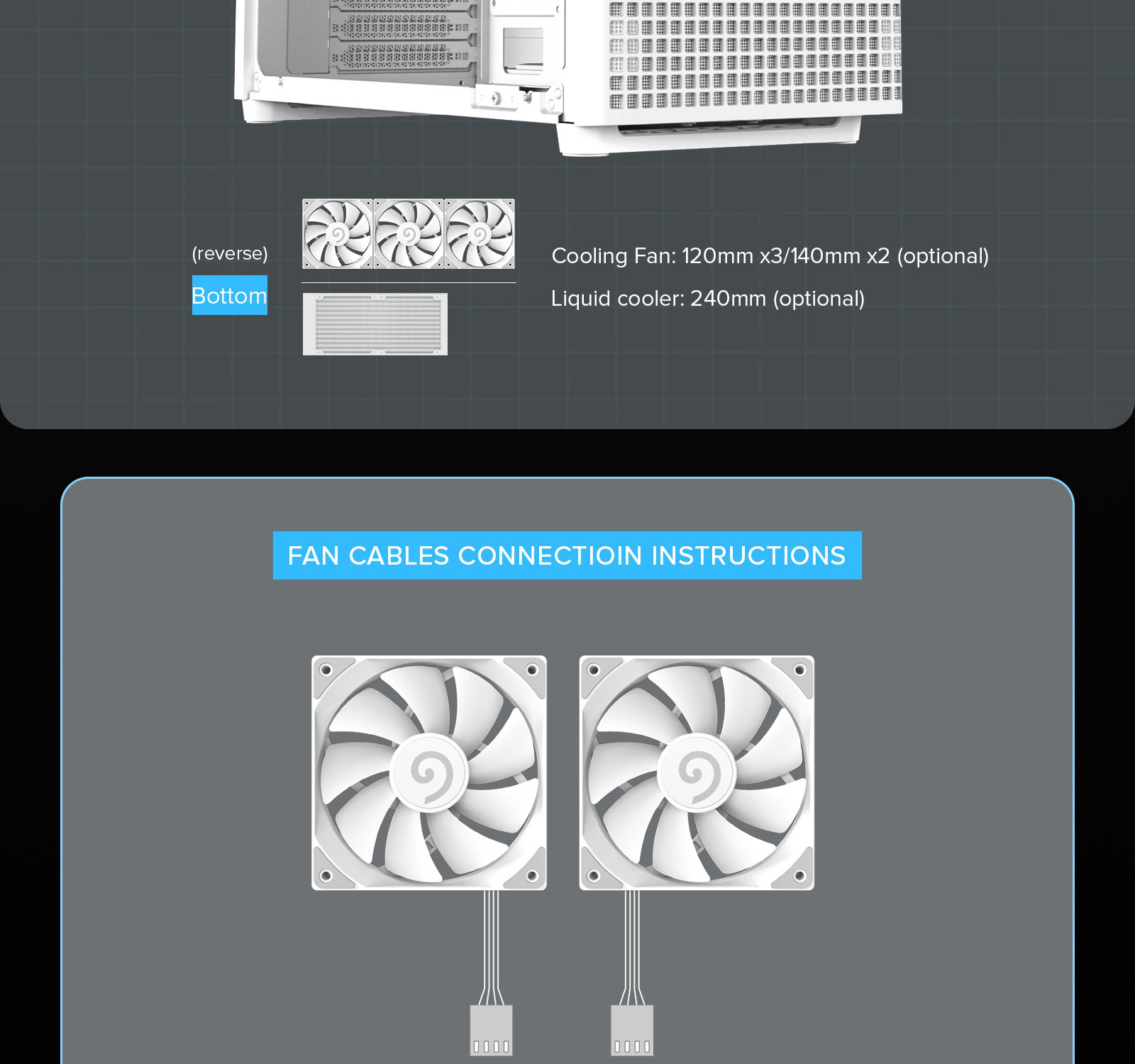 | Bottom | 3x120 or 2x140mm (Fan optional) | |