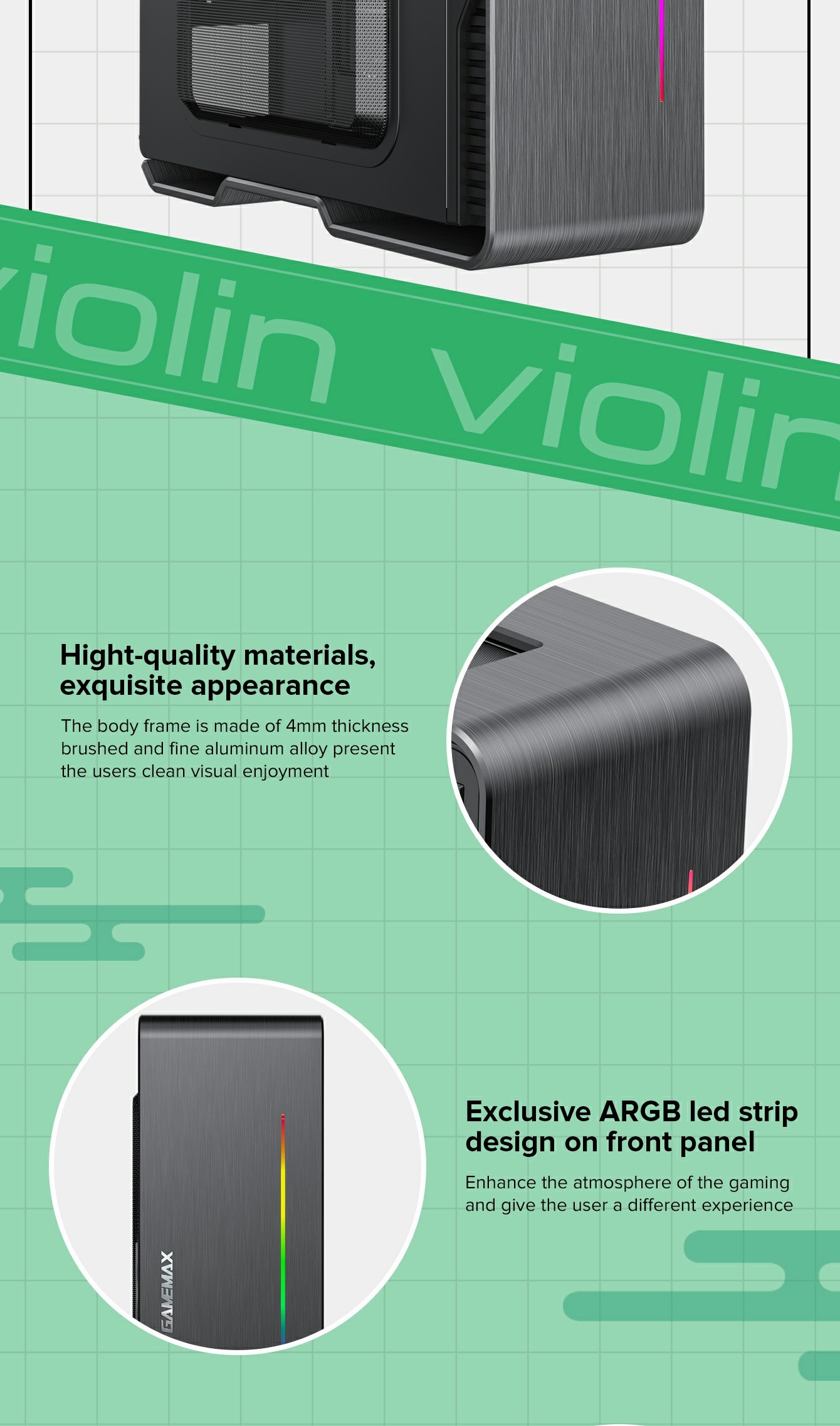 Violin is made of aluminum, and it is an ultra-slim form factor case designed for the most efficient and user-friendly experience