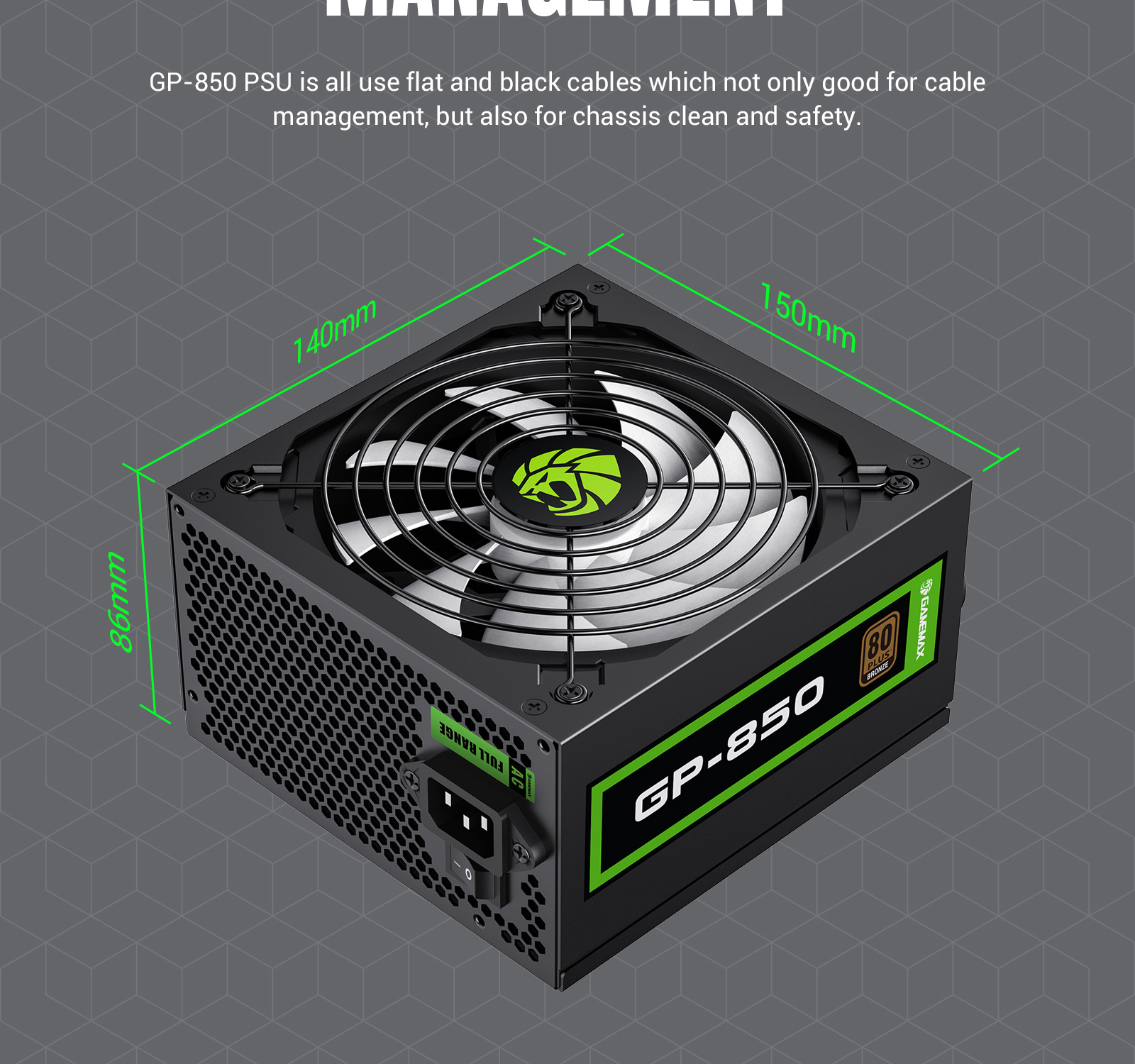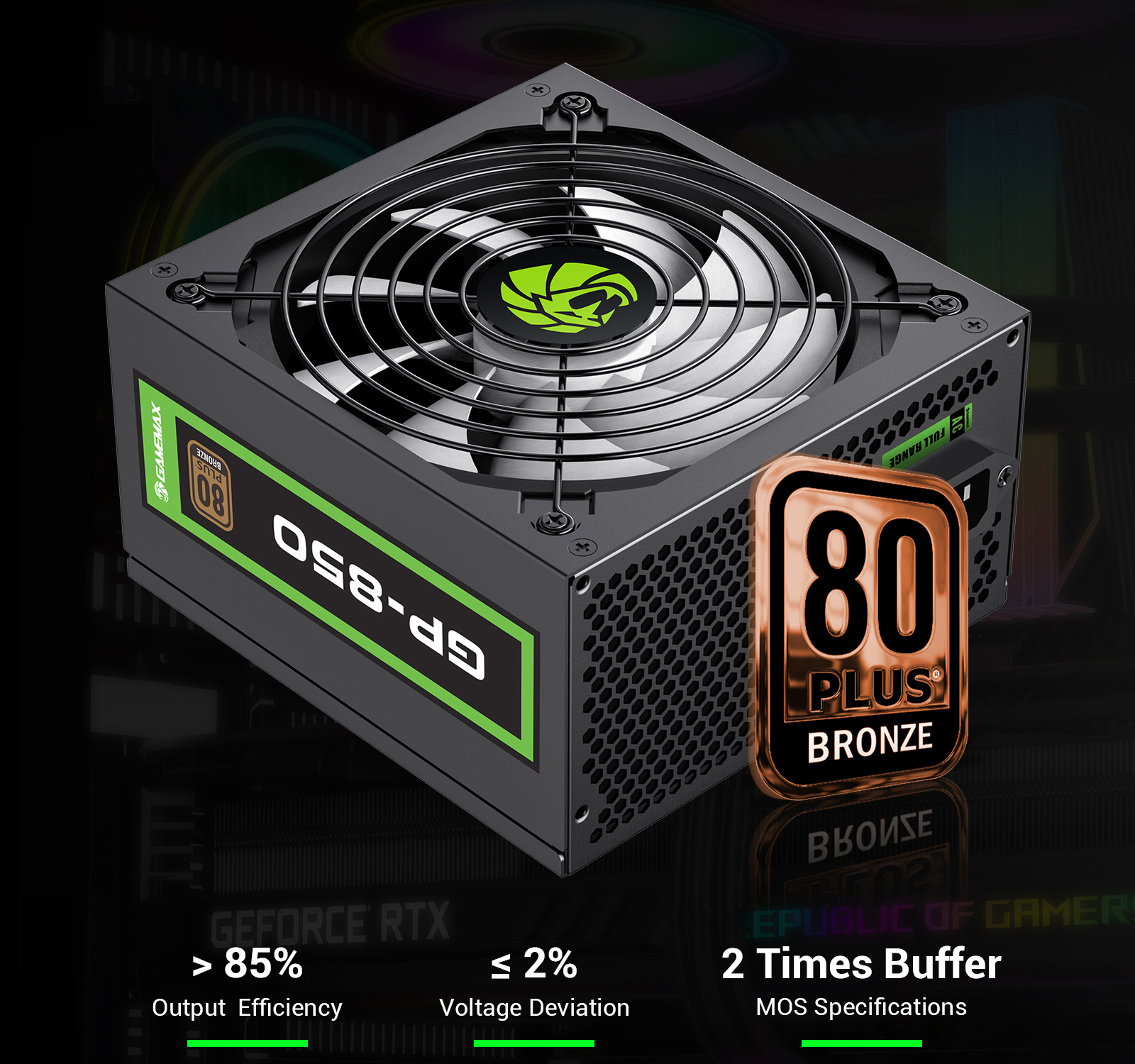 GameMax 80 plus Bronze Certified GP-850 None-Modular PSU features a cut-edge DC-to-DC design, Provides high-performance business and gaming build, and experiences gaming Bliss with the GP-850 power supply!