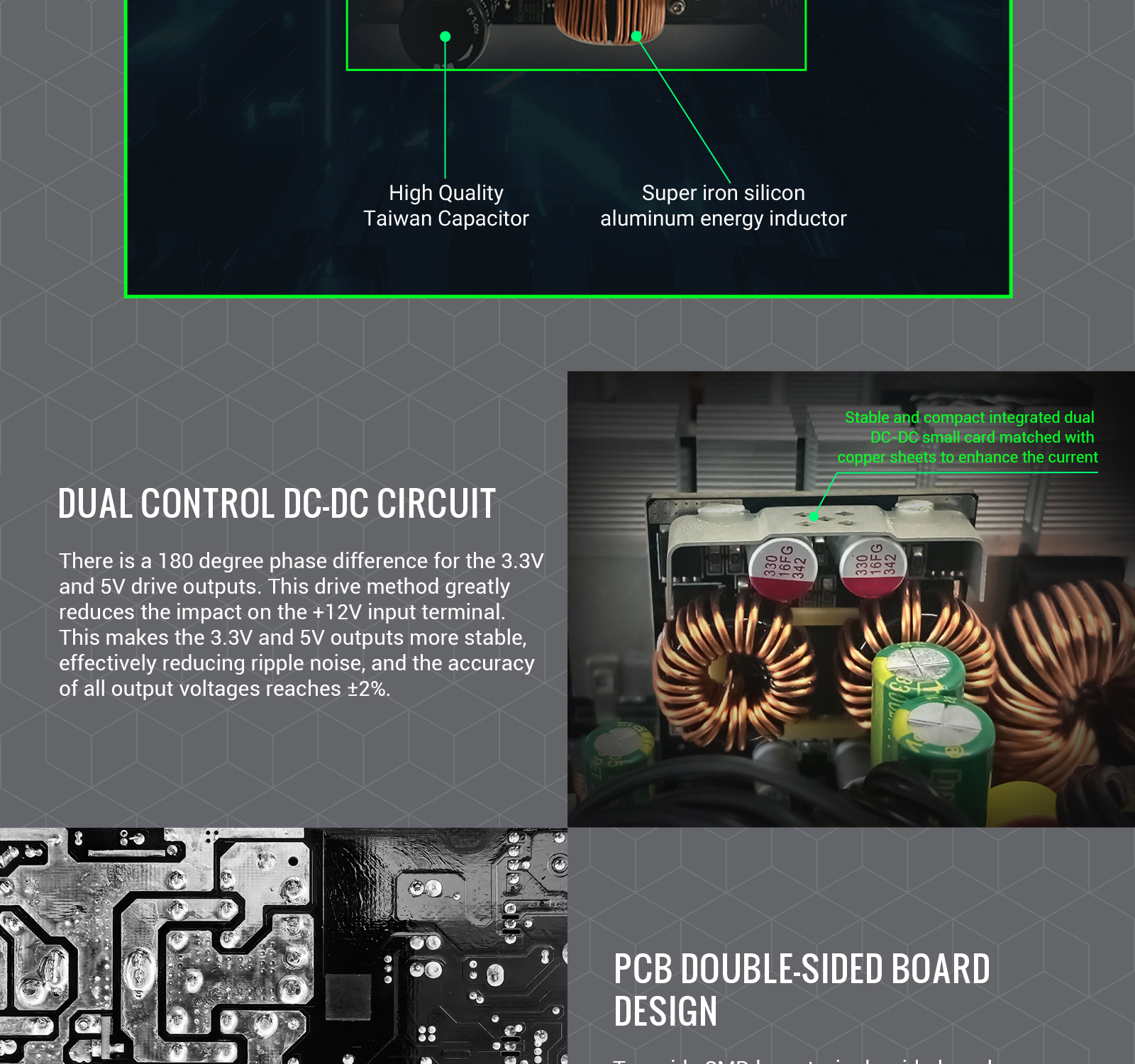 • Engineered with high-end components, Elegant black PSU casing with black flat cable.