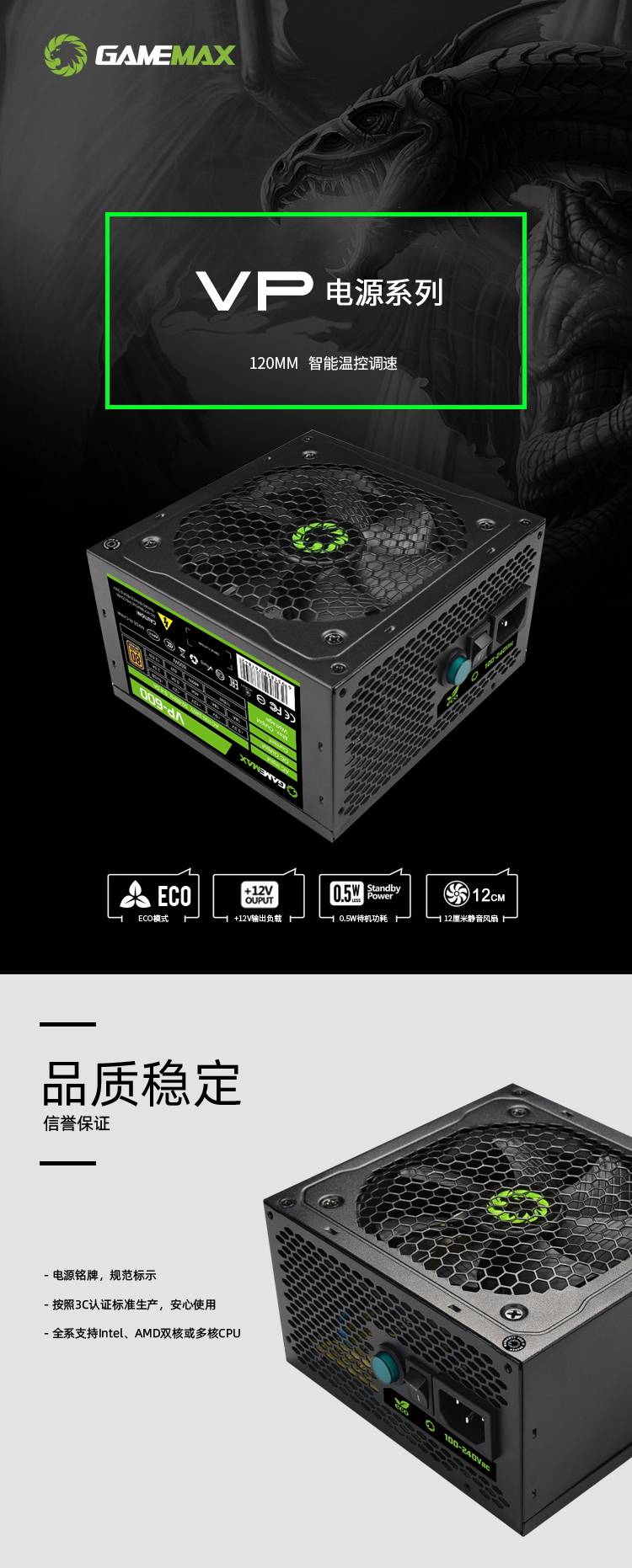 GameMax VP 系列电源具有强大的功能,使其成为寻求高效可靠、物超所值电源的人们的理想选择。 最合适的性价比是系统搭建商的最佳选择。