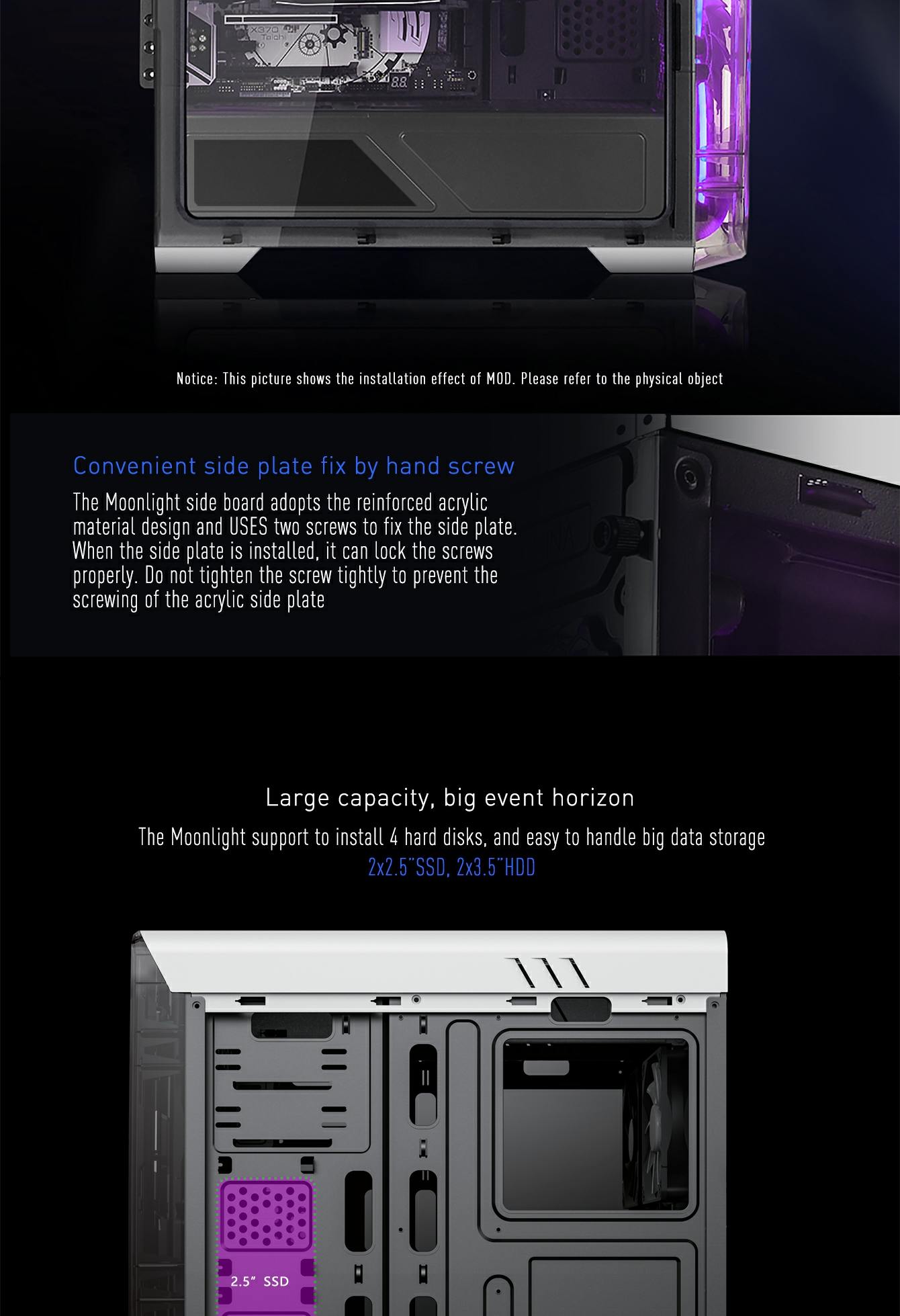 • The MoonLight FRGB supports the following motherboard types: ATX, Micro ATX, and Mini-ITX.