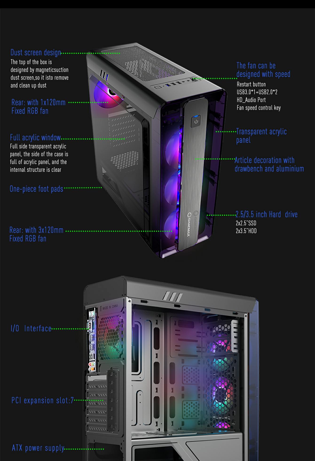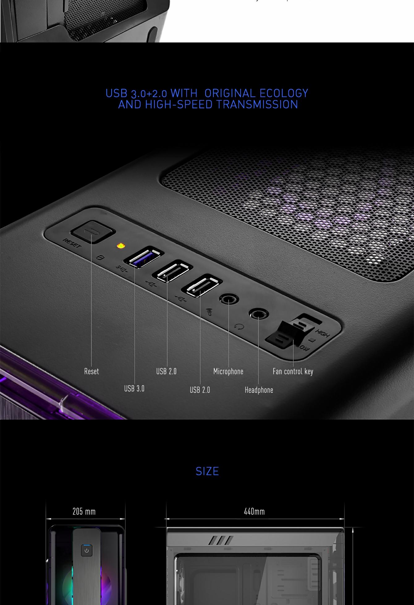 Top: 2x120mm FRGB  4colors fan (Optional)