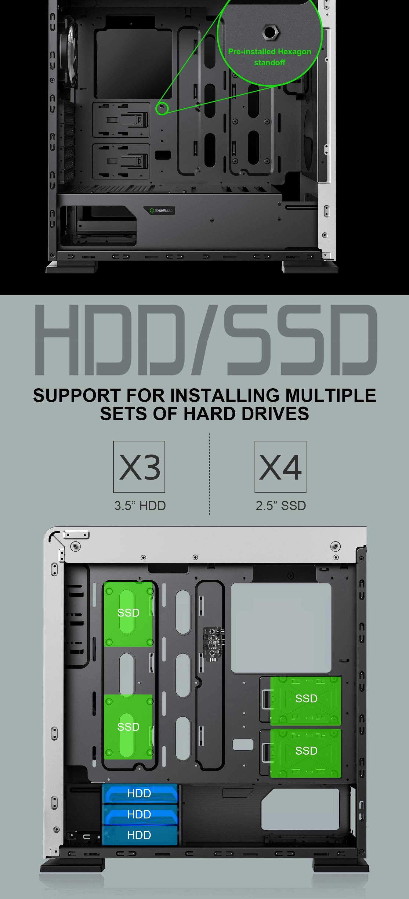 • Most importantly, the spacious interior design not only provides plenty of space for cable management but also allows users to install the latest PC hardware, and DIY liquid cooling solutions