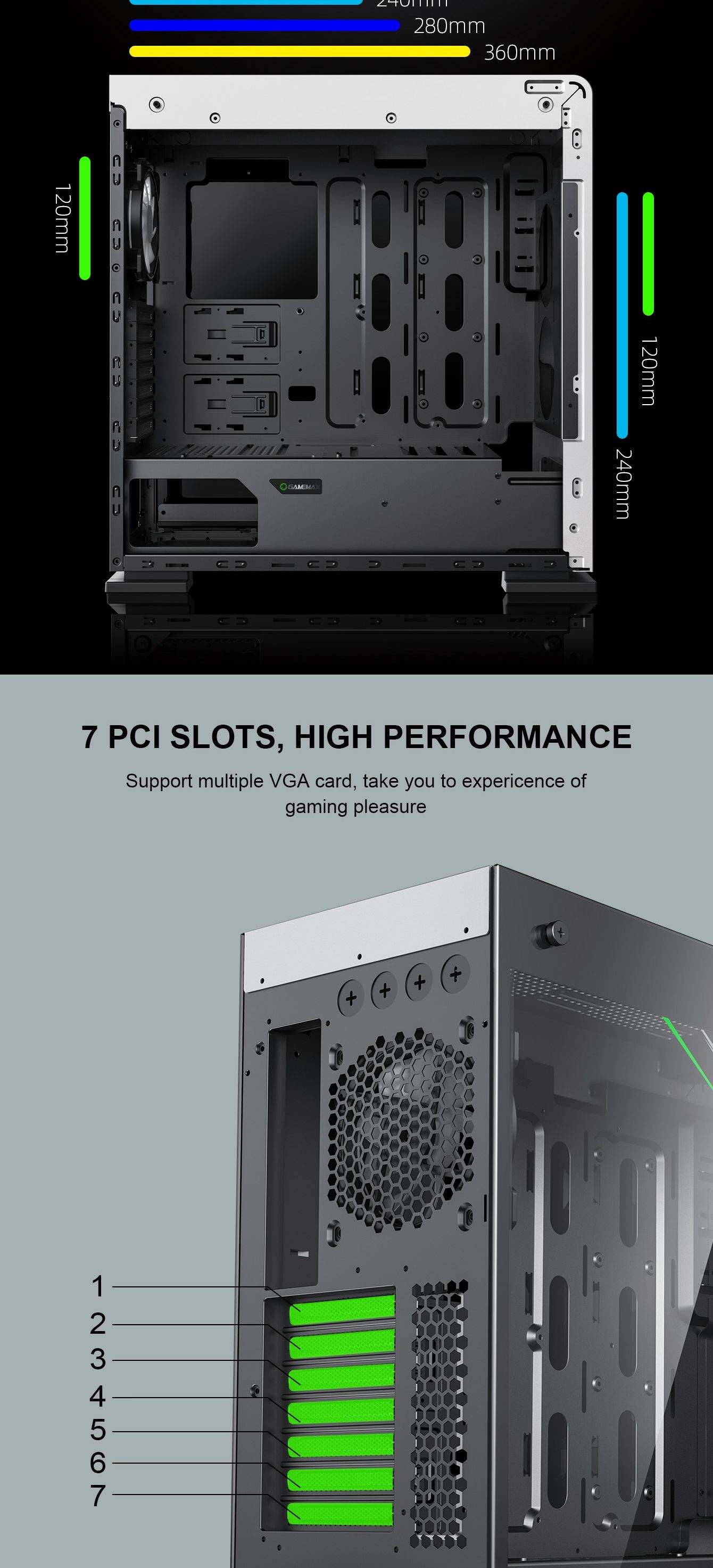 | Water Cooling Support (Radiator Size) | Front | 120mm*1,240mm*1 |