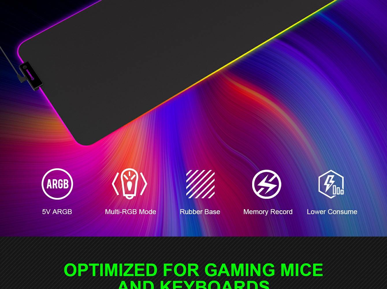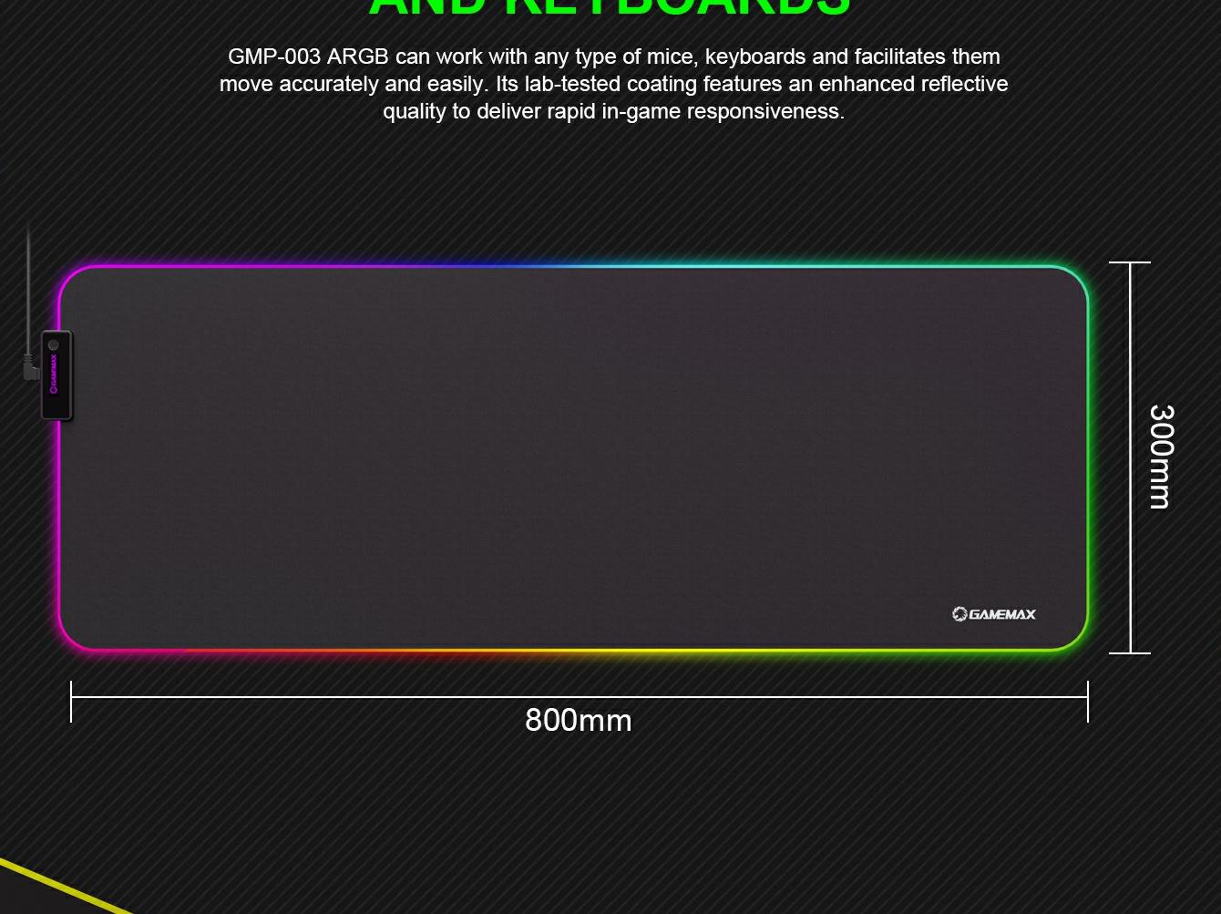 OPTIMIZED FOR GAMING MICE AND KEYBOARDS GMP-003 RGB can work with any type of mouse, or keyboard and facilitates them to move accurately and easily