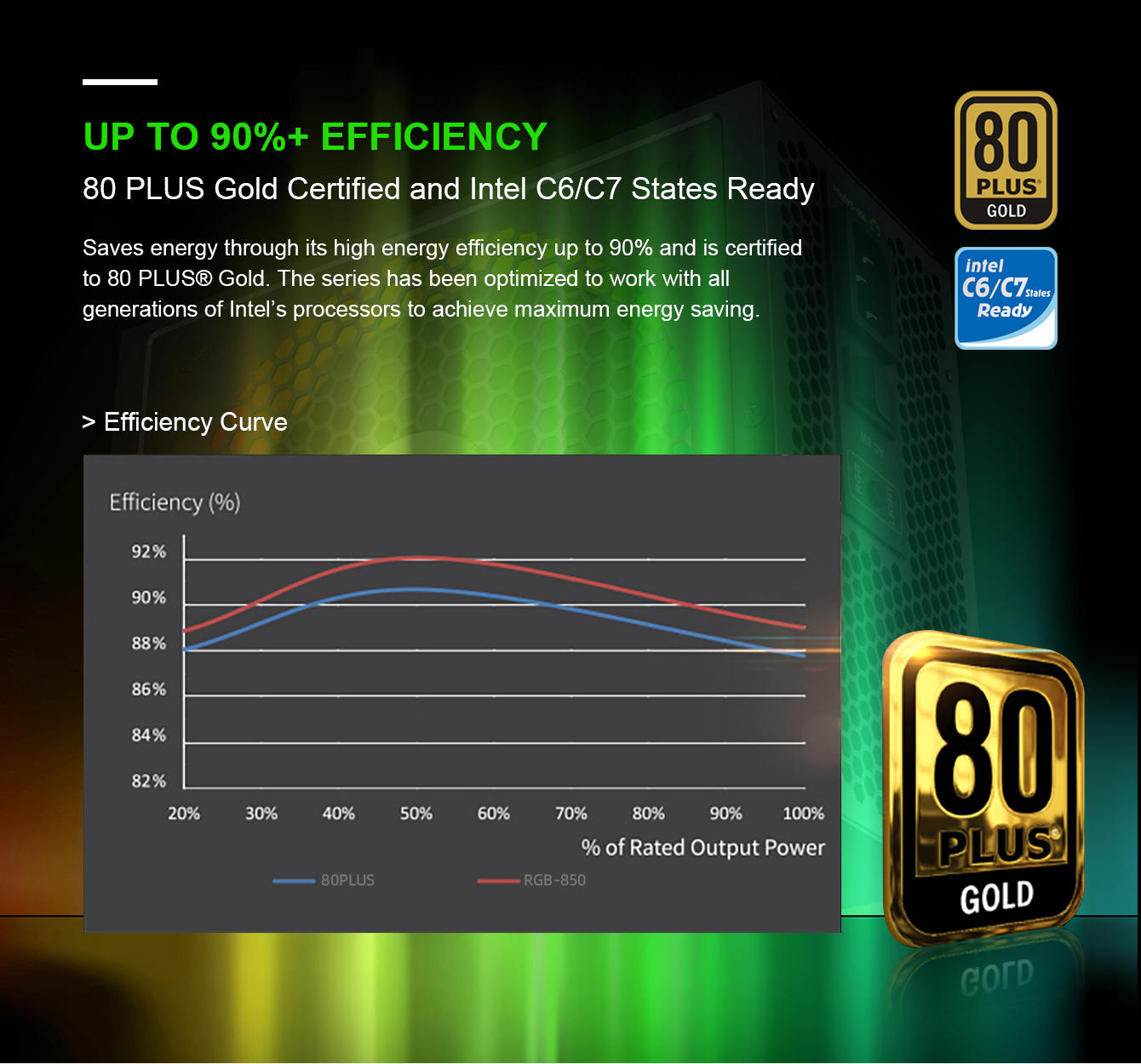 • 80 Plus Gold Certified: 80 Plus Gold certified with 90% efficiency or higher under typical loads