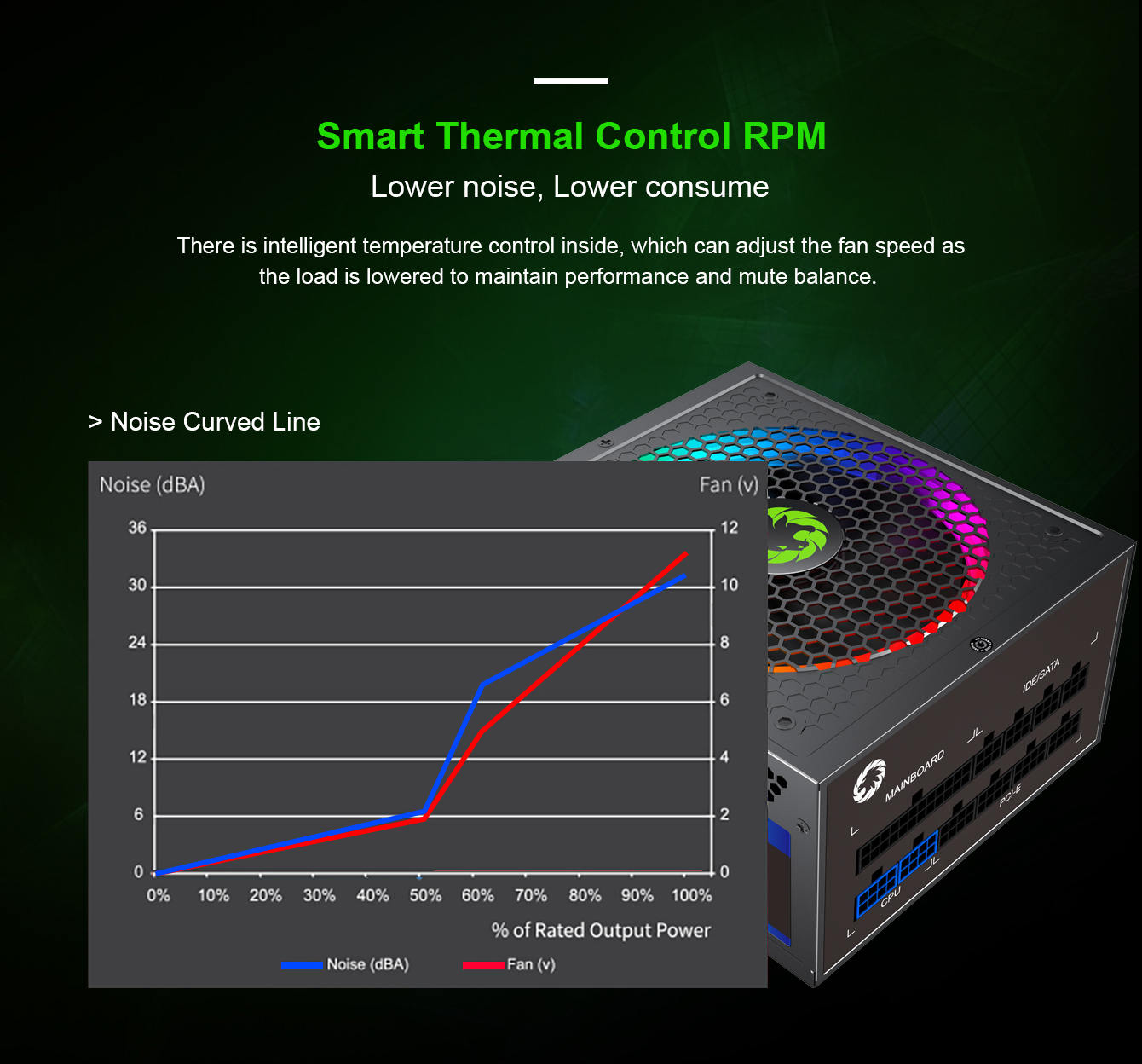 • The matched 140mm fan allows your power supply to maintain good heat dissipation while still maintaining be quiet.