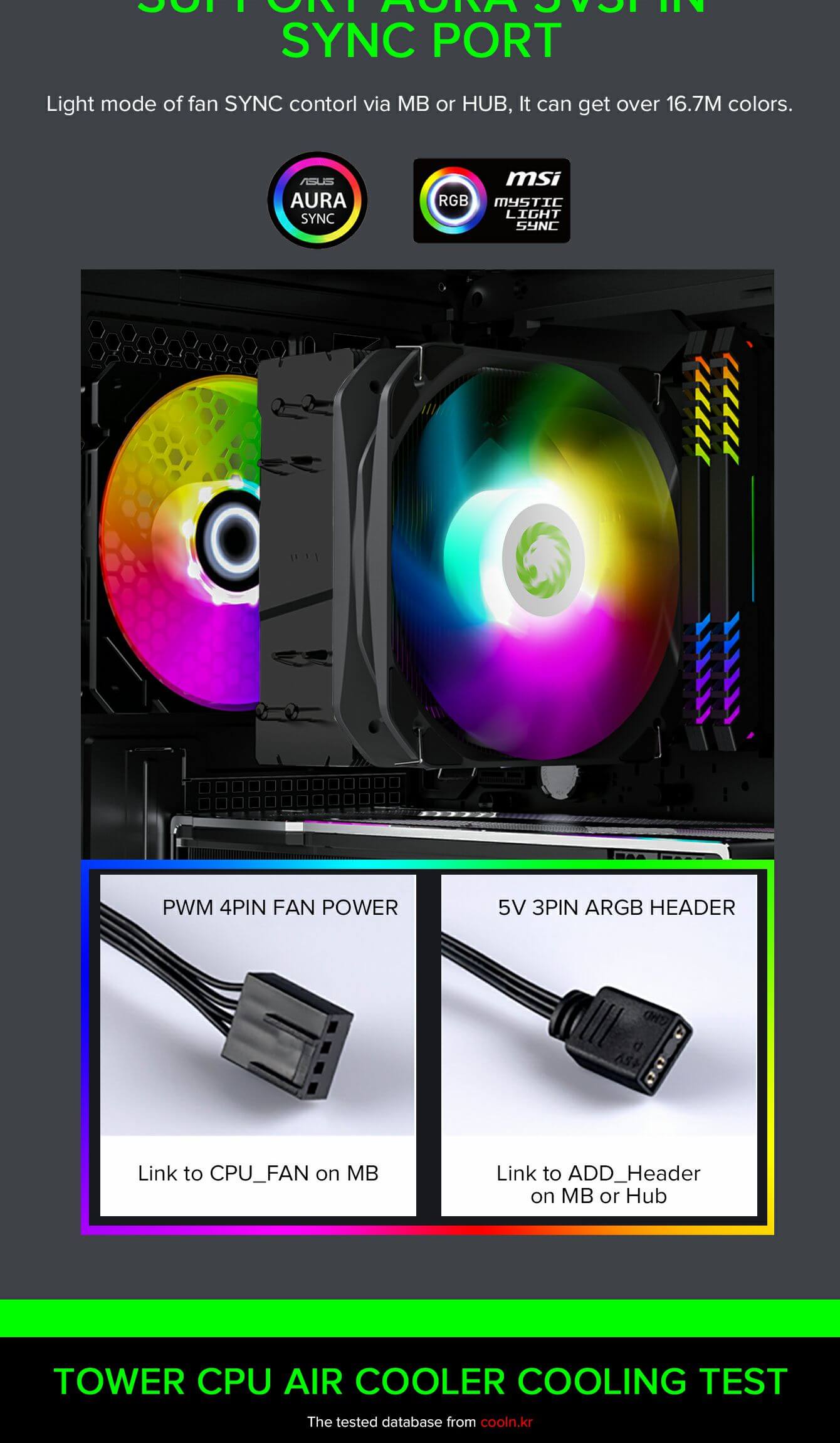 • Addressable ARGB,5V 3PIN Aura header Included, SYNC with Motherboard or HUB