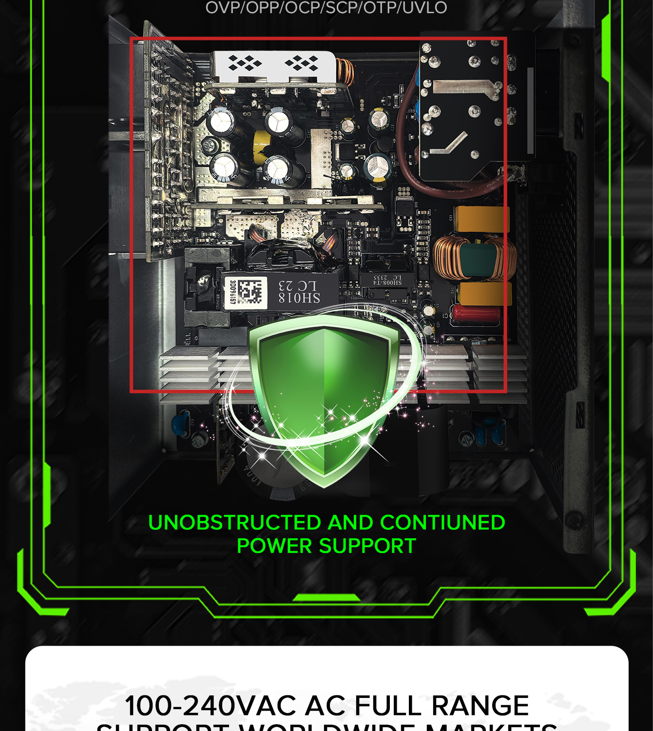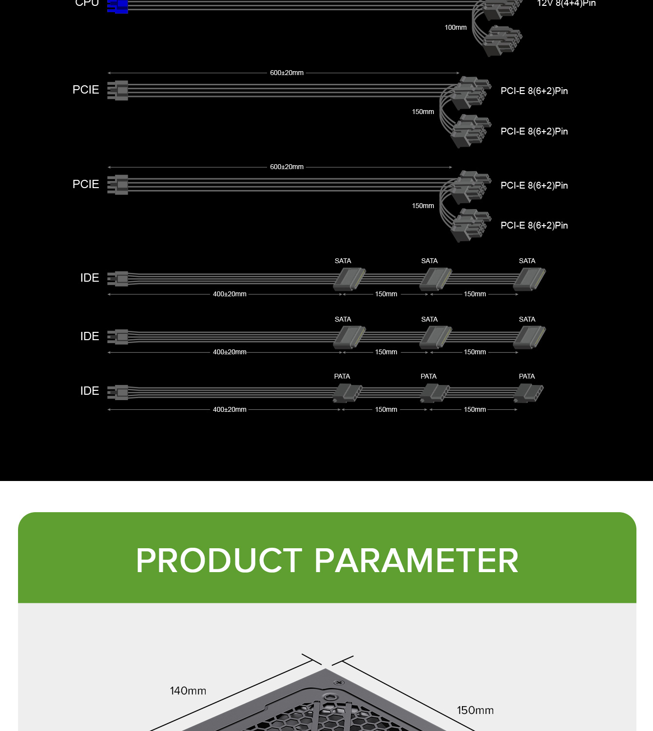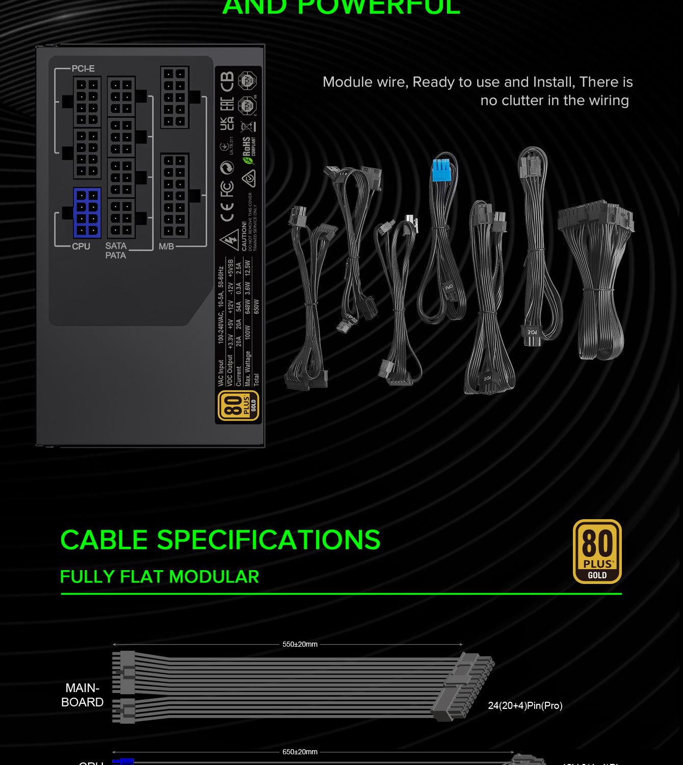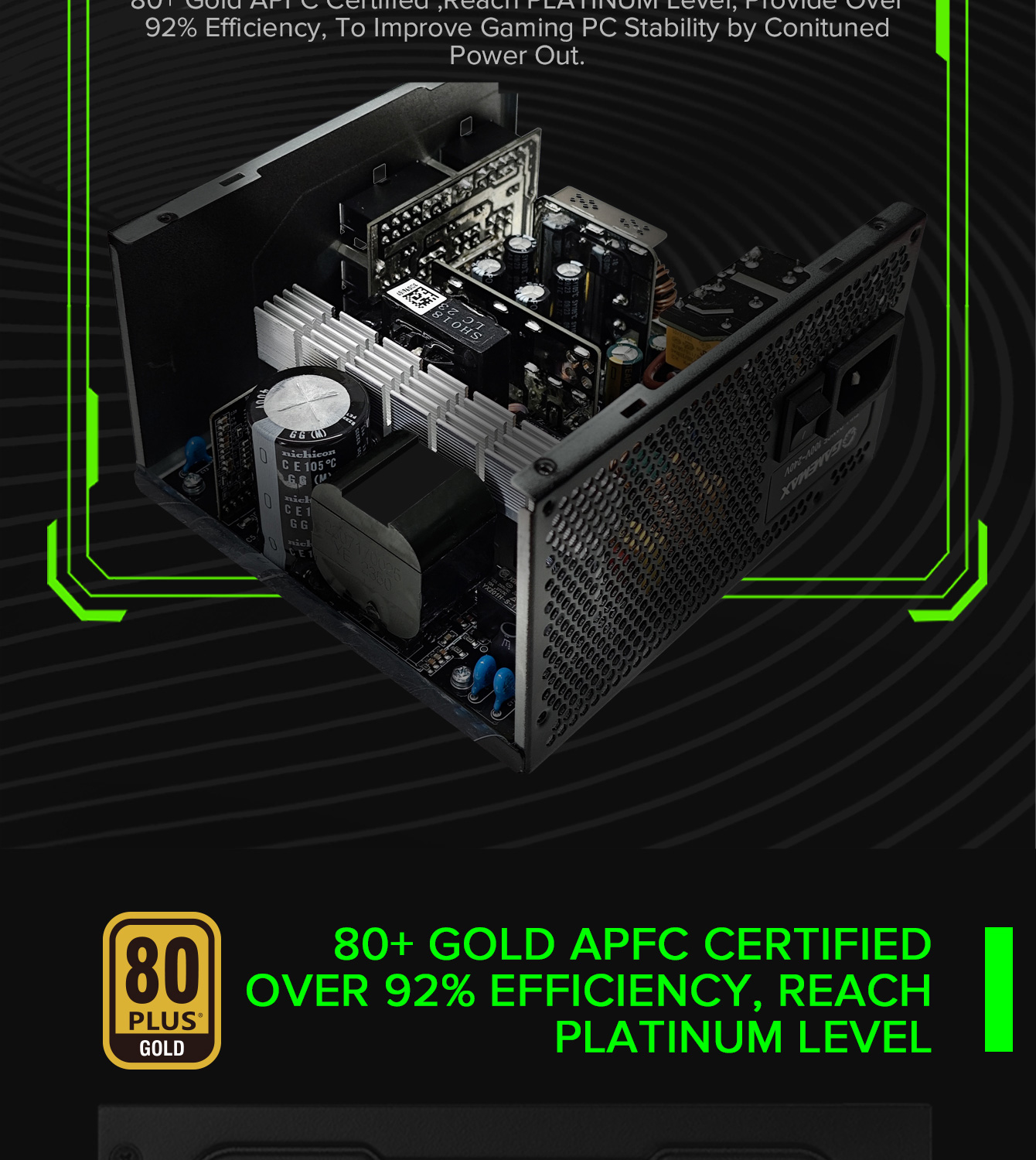 • Broad Compatibility: Full voltage input range and multiple PCIE interfaces support the latest graphics cards.