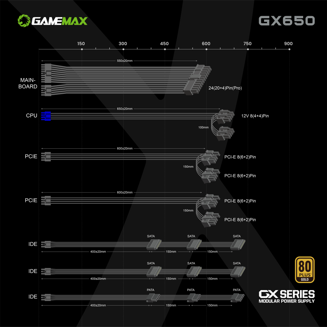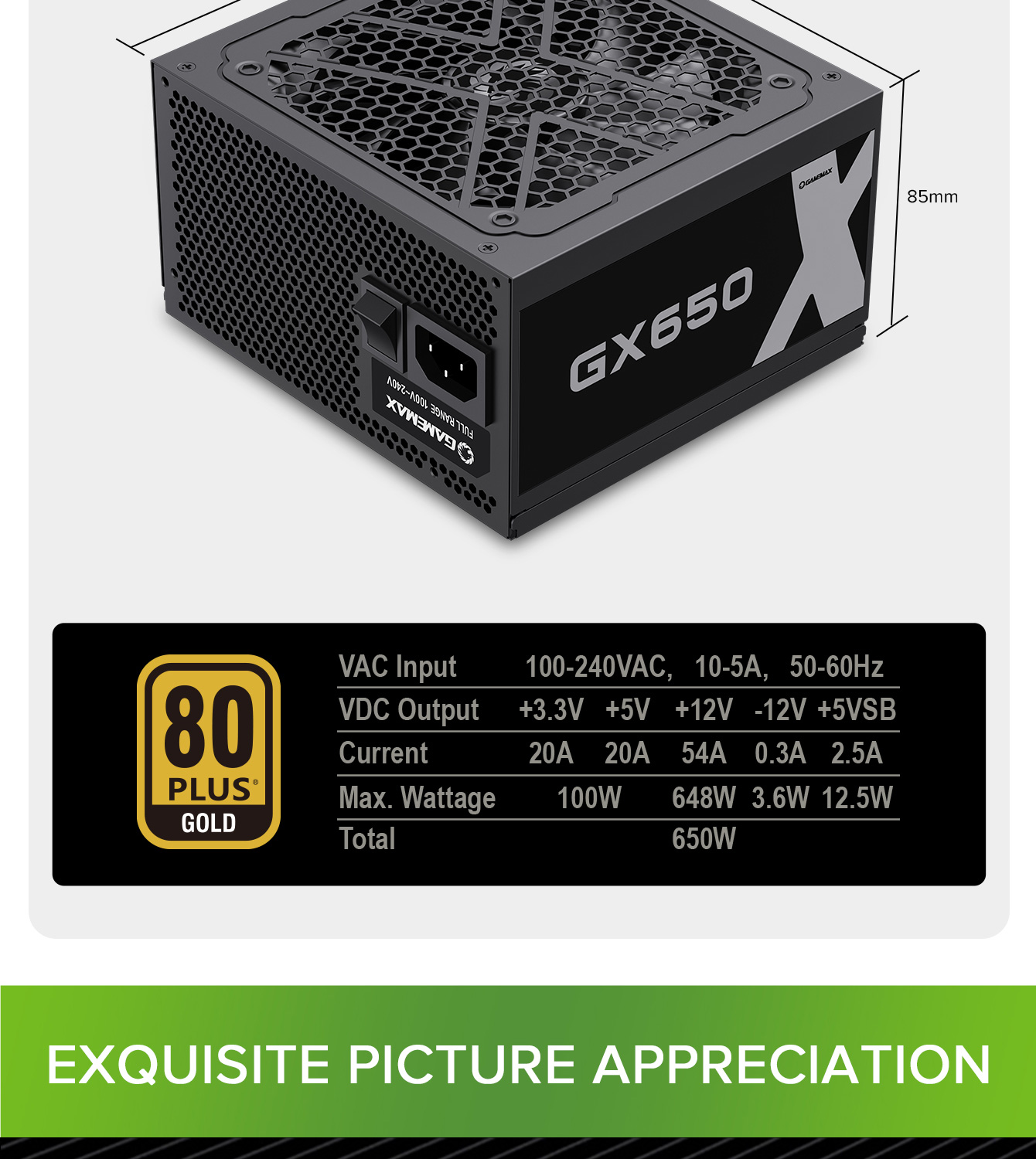 GameMax GX-650W Modular 80+ Gold ATX Power Supply: