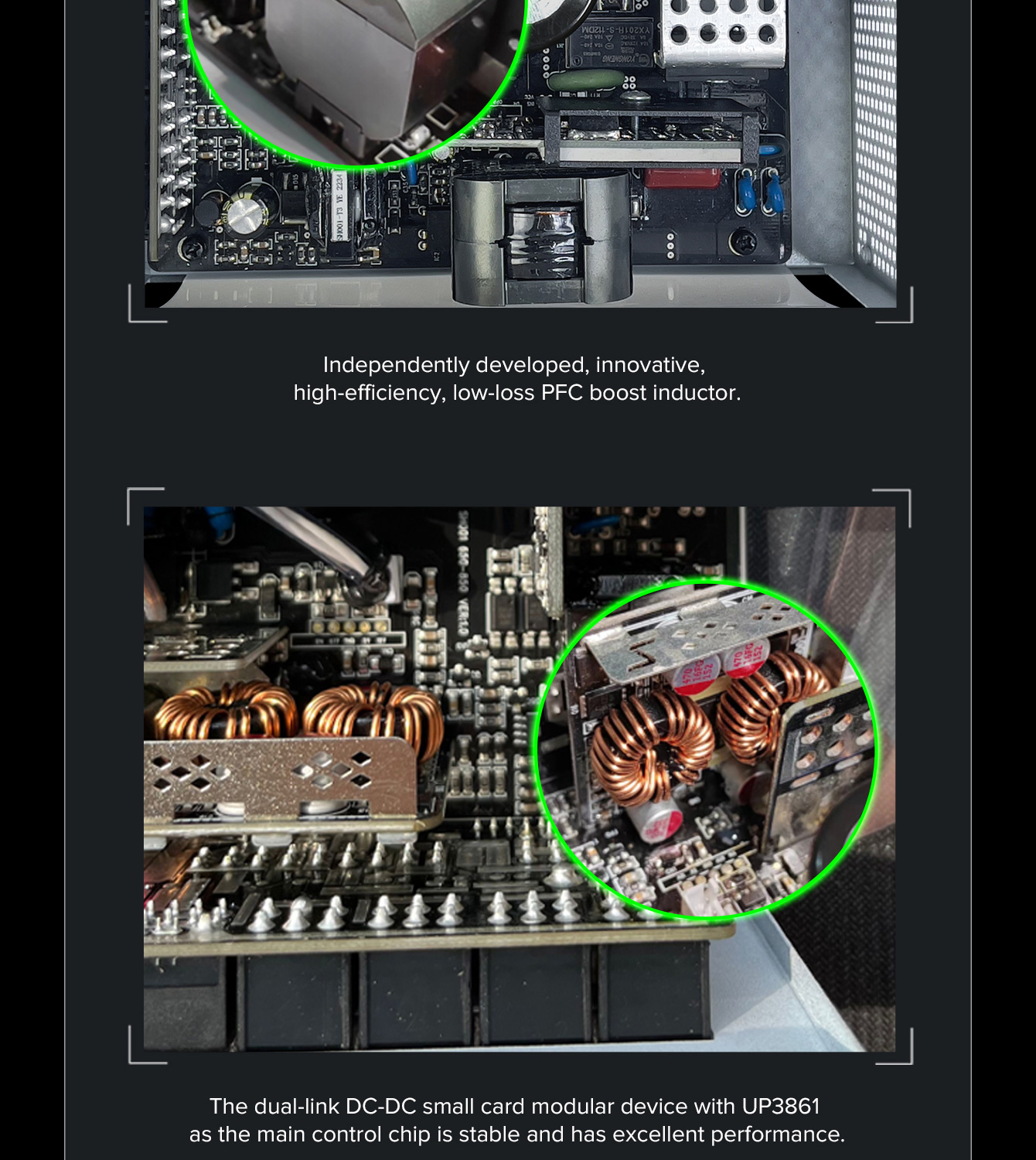 • UP3861 Chip ensures stable 3.3V and 5V outputs with reduced ripple noise