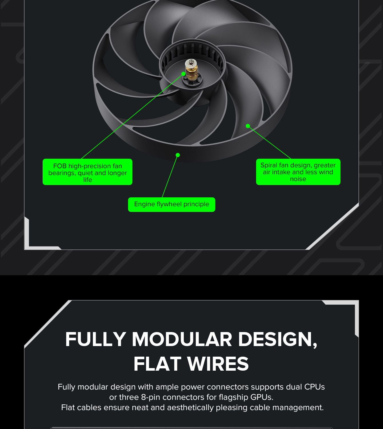 • Black flat copper output cables for efficient power delivery