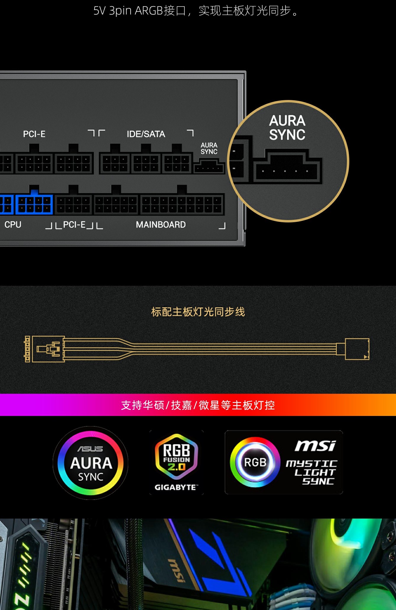 ATX3.0版本:带1x16PIN原生PCI-E5.0接口及配套线材,更快速方便满足最新的显示卡,并使显示器性能输出更稳定,提供全方面电源电压需求保障