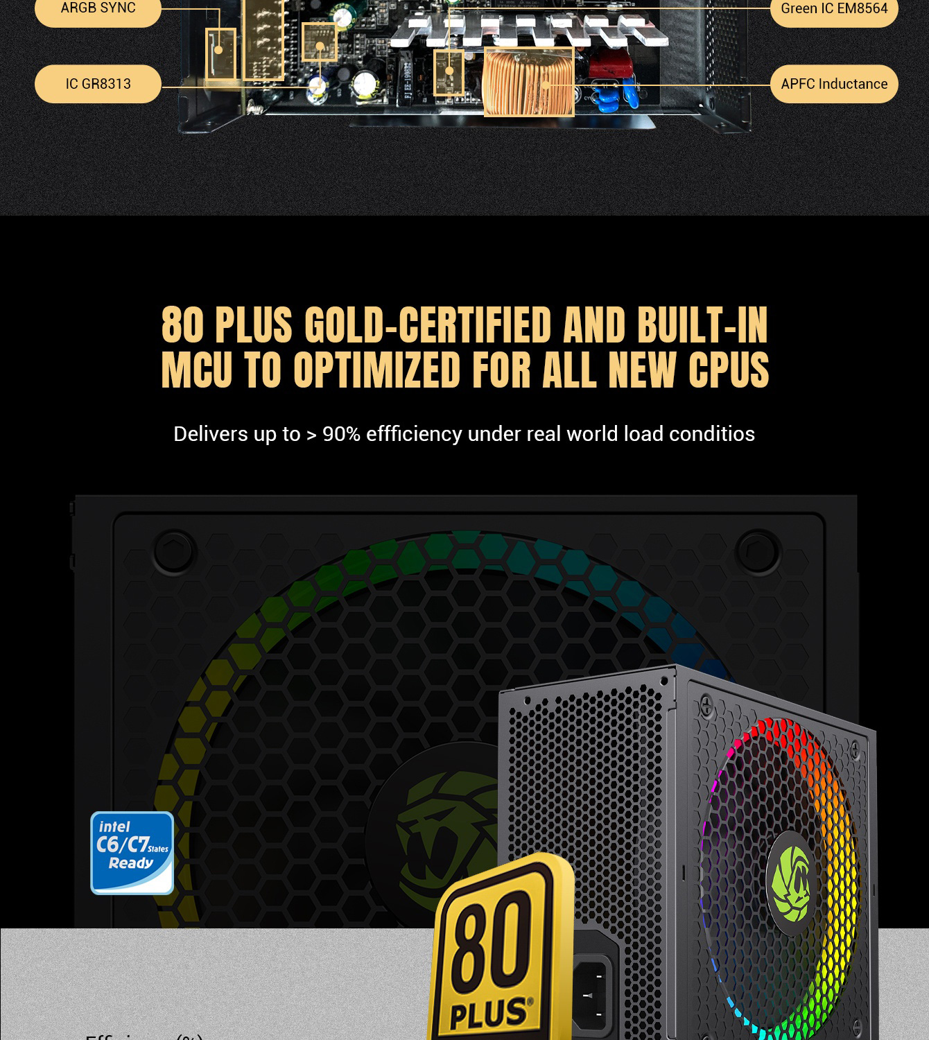 • 80 Plus Gold Certified: RGB-850 PRO uses the main Japan Capacitor with 90% efficiency or higher under typical loads
