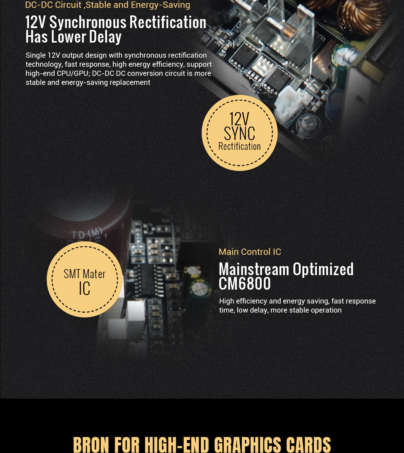 • Output and Protection: Powerful single +12V rails offer stable DC output and support high-end graphic cards and PC systems