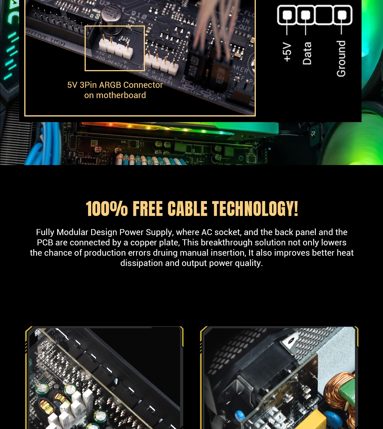 • Full Modular: 100% Free-Cable Internal PCB Design, Farewell to messy cables!