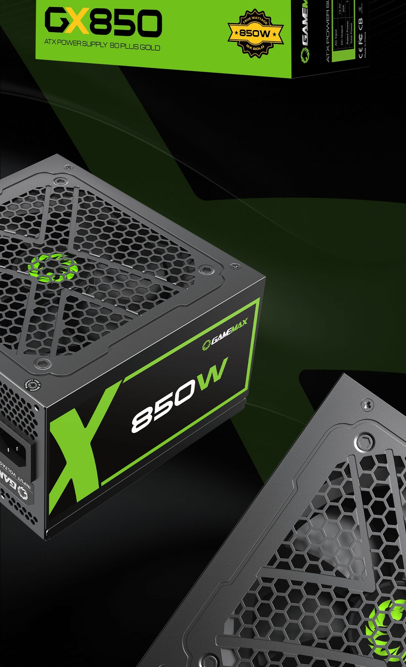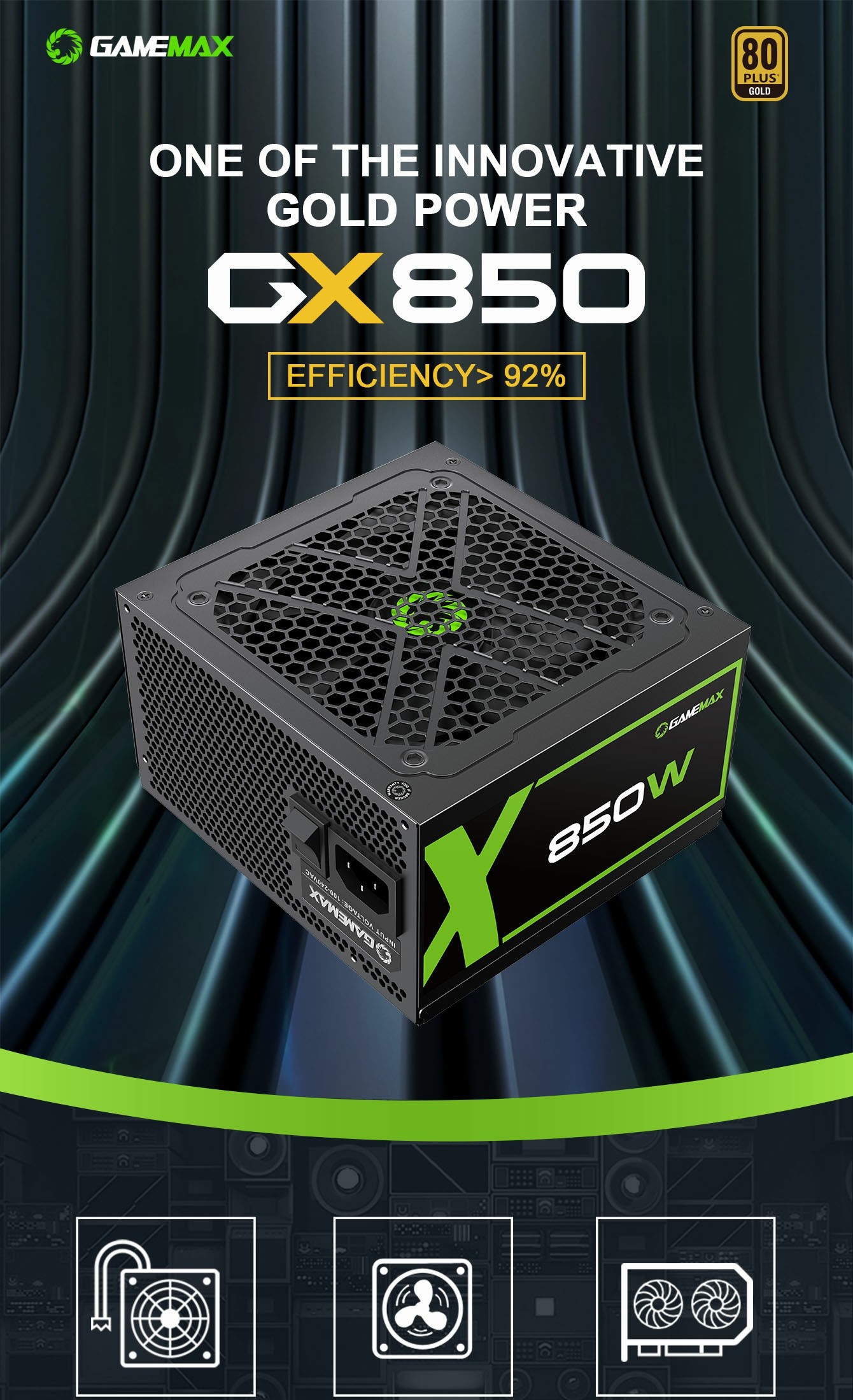 GameMax GX-850 80+ Gold None-Modular ATX Power supply. Gold Efficiency: 80+ Gold certified for high efficiency.