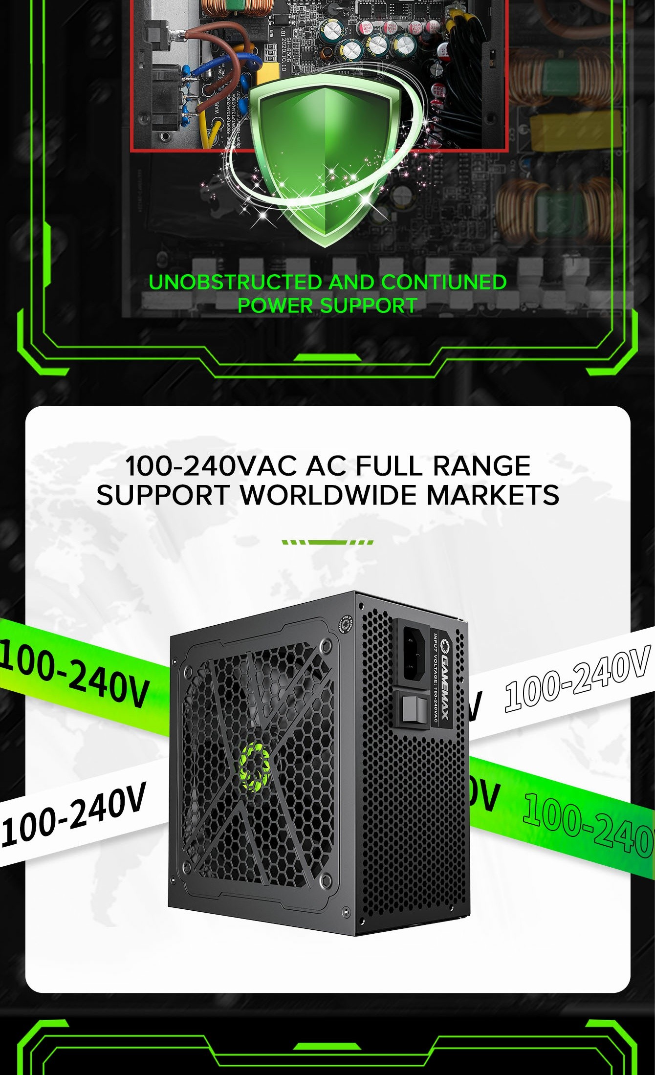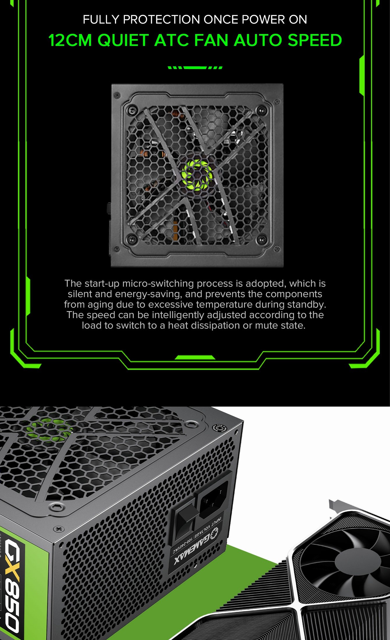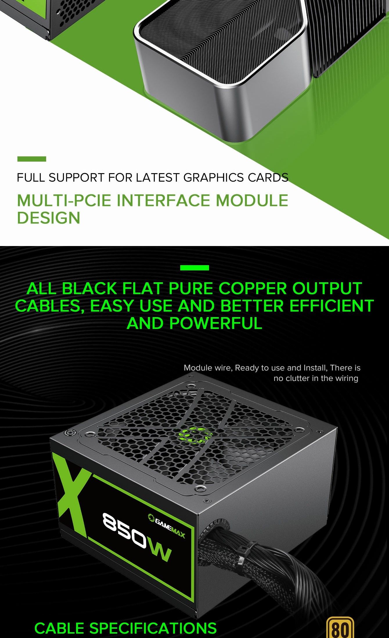 • Wide Compatibility: Supports latest GPUs and full voltage range.
