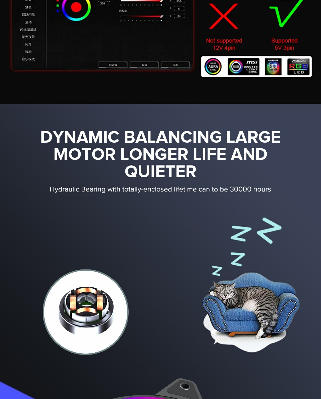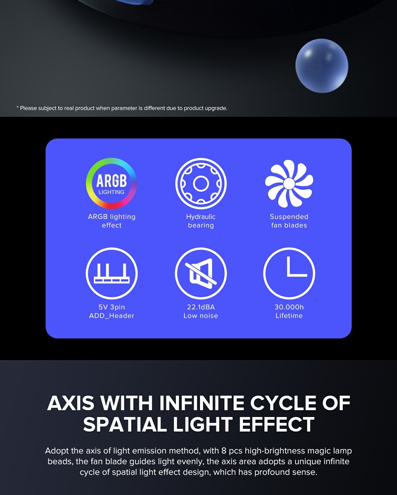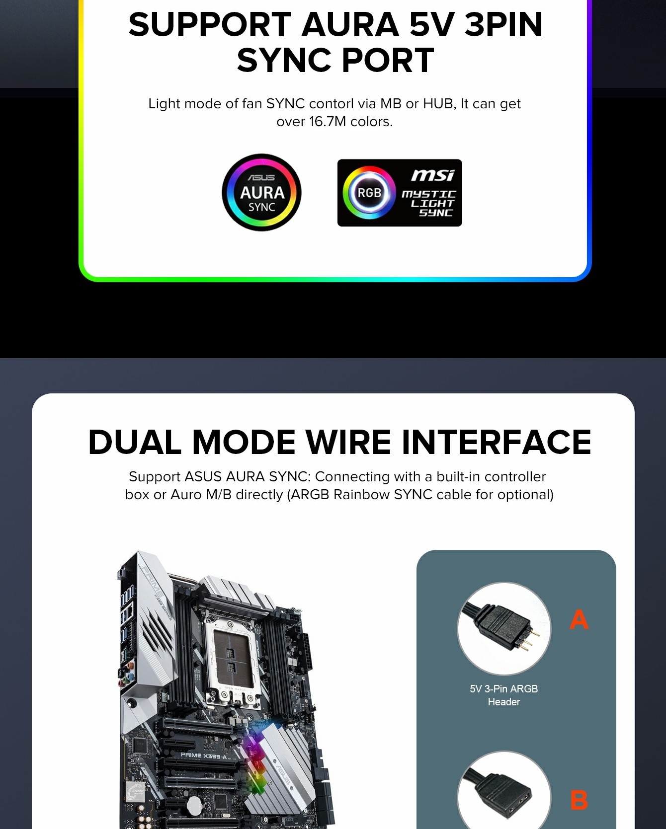 • ARGB Compatibility – Supports 5V 3-pin Addressable headers, powered by standard 3-pin fan connector.