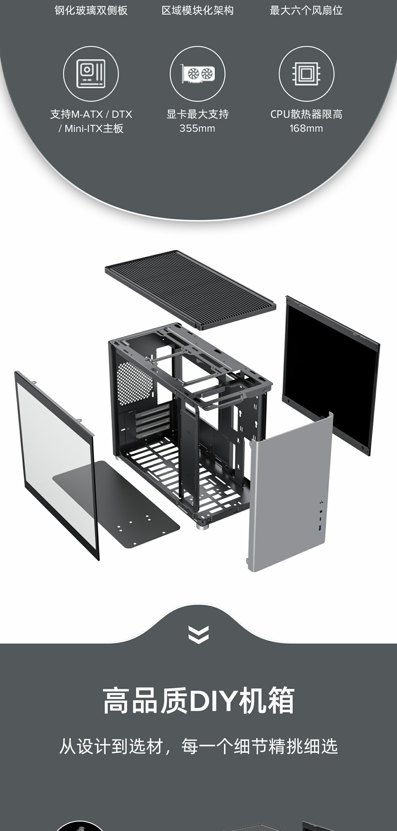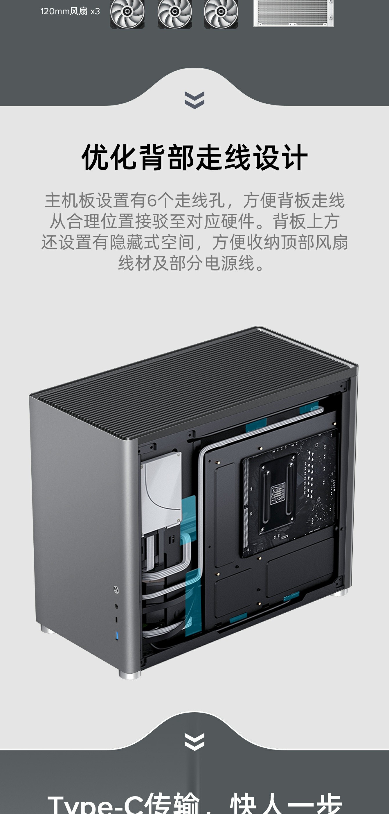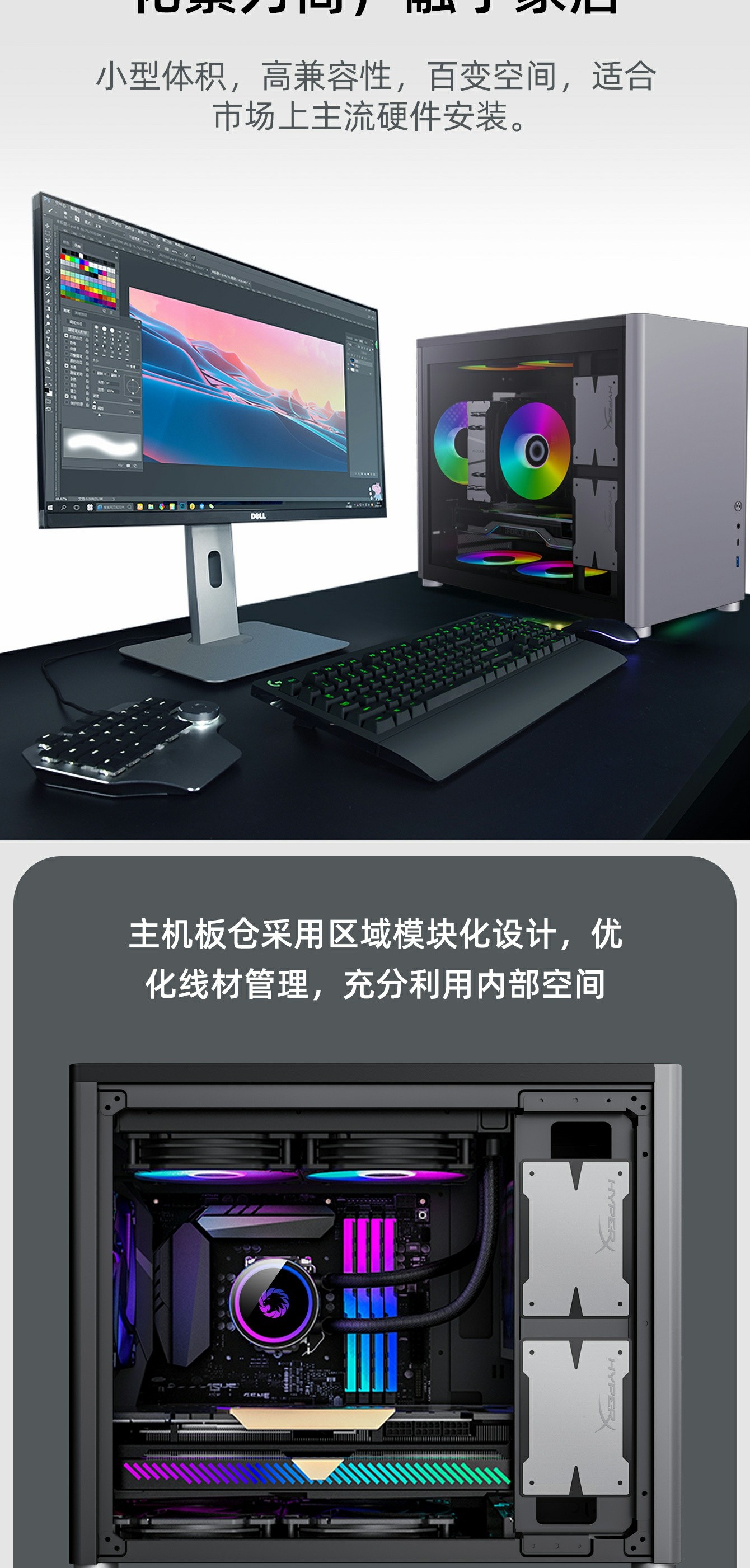 主机板仓采用区块模块化设计,优化线材管理,充分利用内部空间。