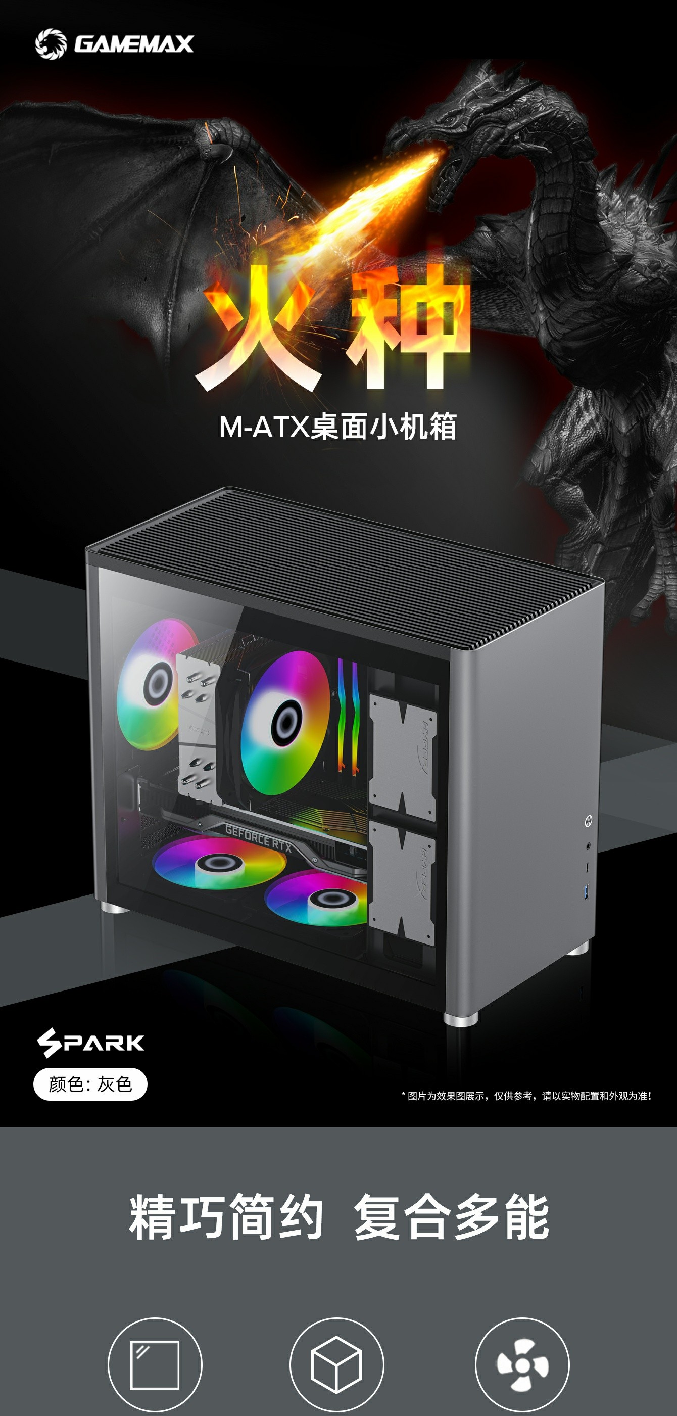 GameMax火种 Spark 垂直风道游戏机箱,化繁为简,融于家居