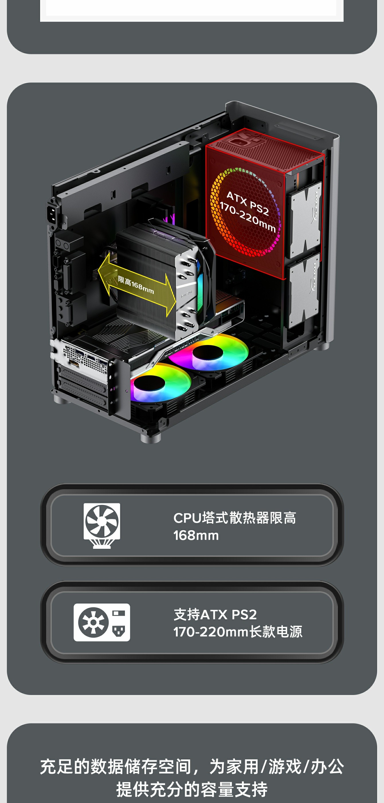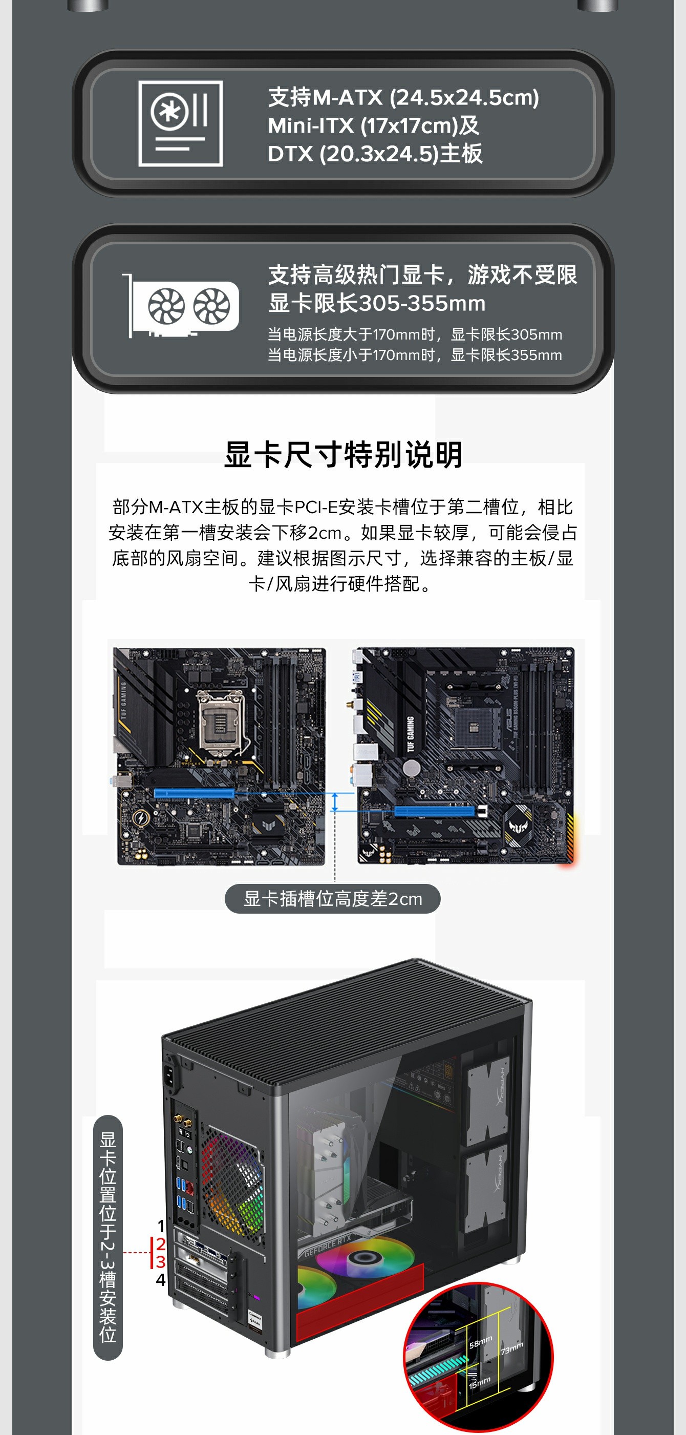 支持高阶热门显卡305~355mm,游戏不受限。