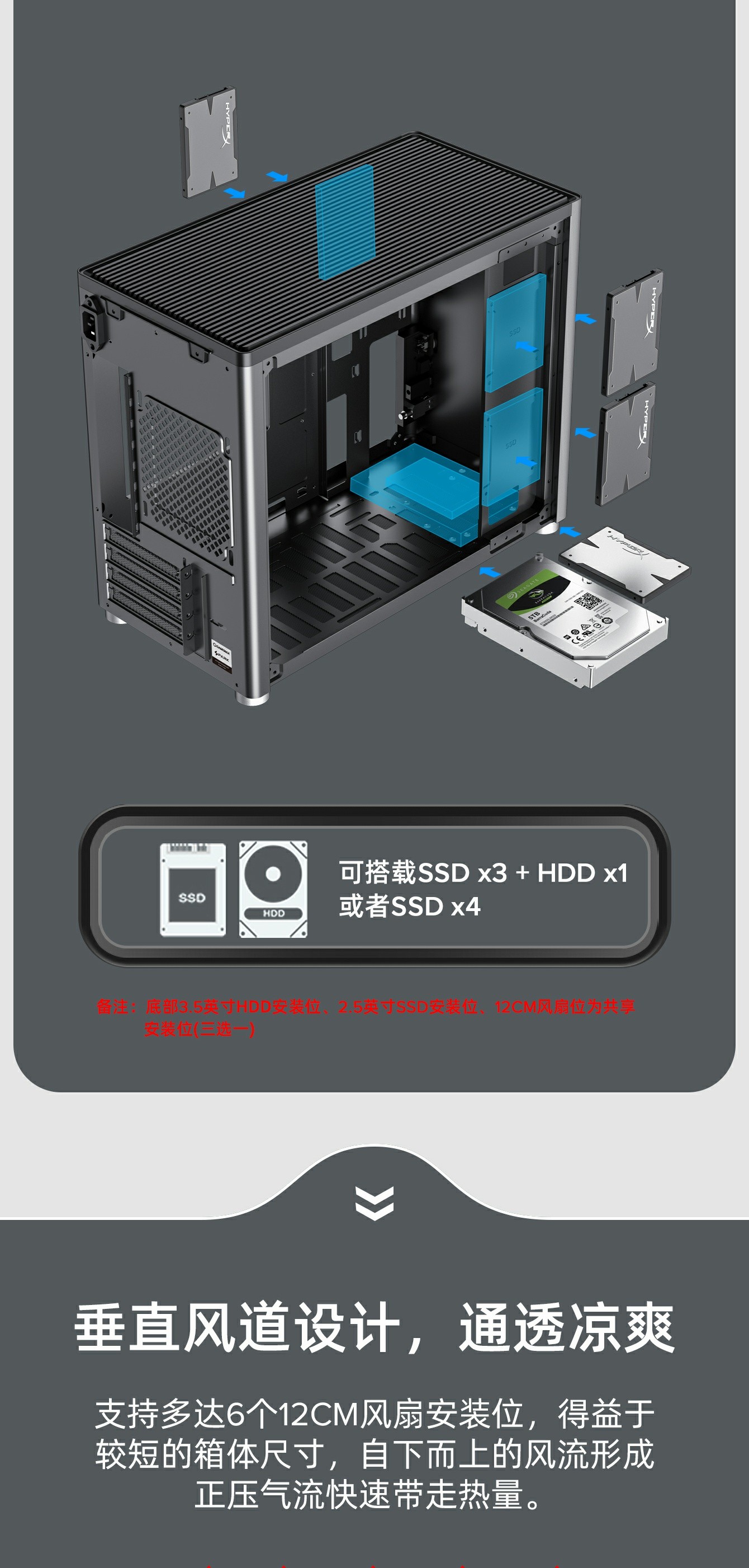 垂直风道,小型体积,高兼容性,基本适合市场上所有主流配件安装