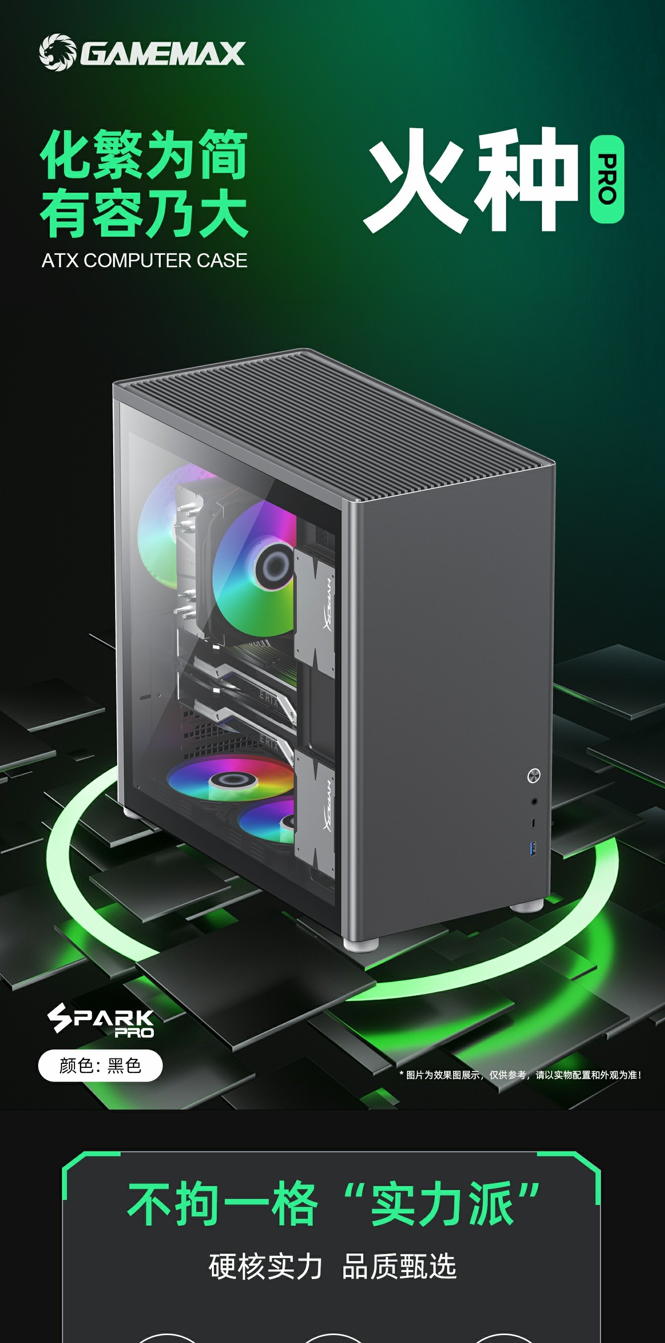 GAMEMAX游戏帝国火种Spark Pro ATX版 垂直风道 ,高兼容性,化繁为简,融于家居
