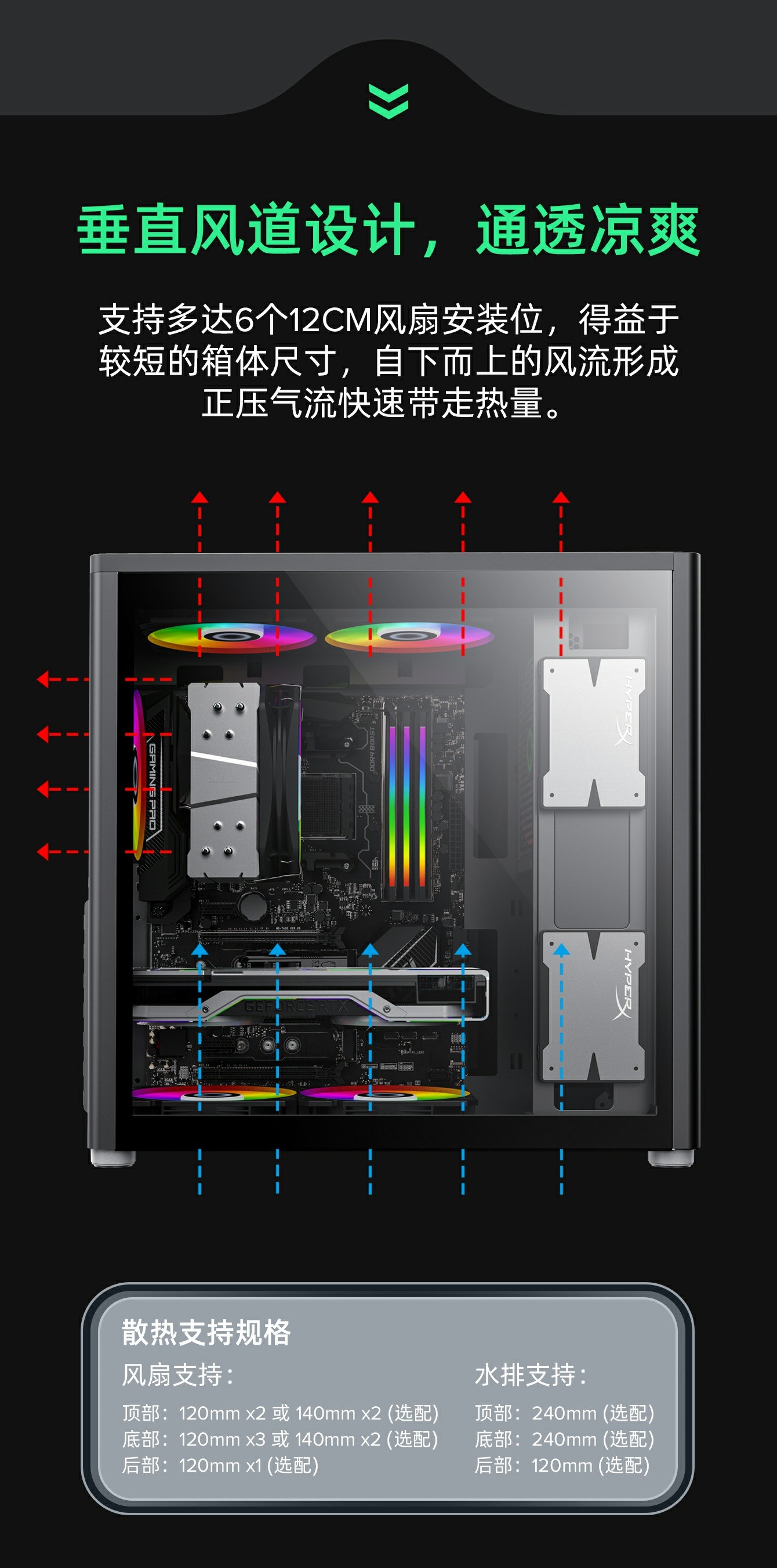 垂直风道,小型体积,高兼容性,基本适合市场上所有主流配件安装
