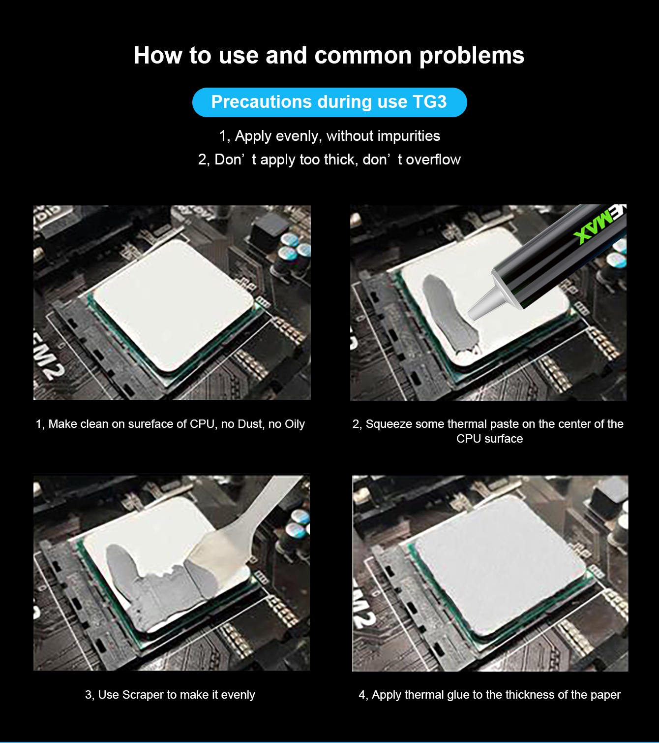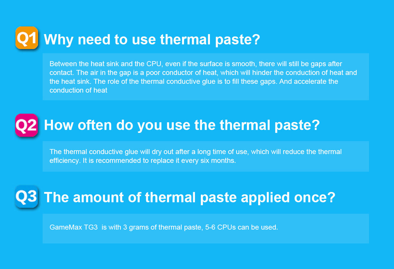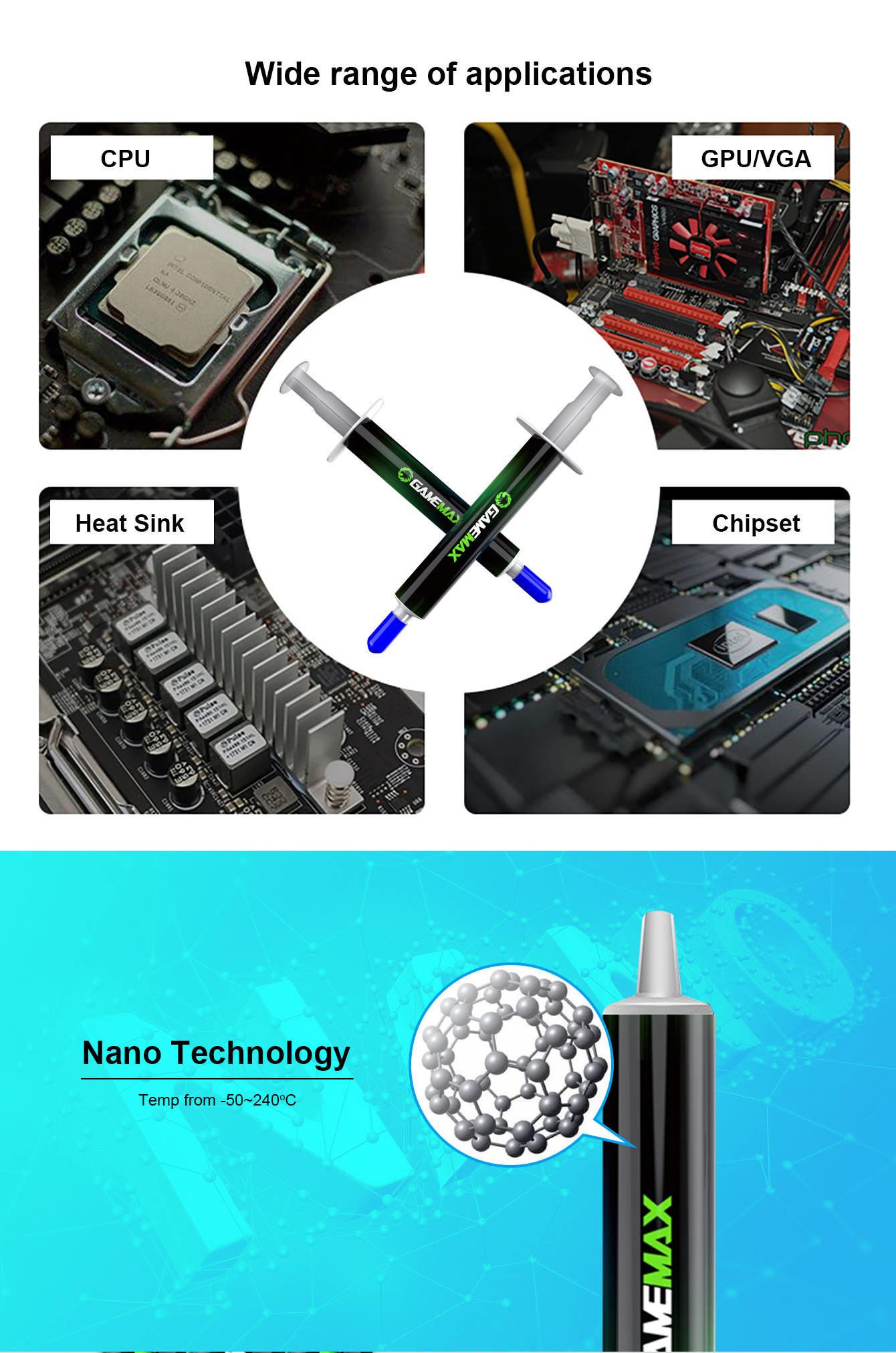 High-performance thermal paste specially designed for overclocking or gaming PCs ,Comes with 3g thermal paste that is easy to apply and perfectly fills the space between your cooler and CPU