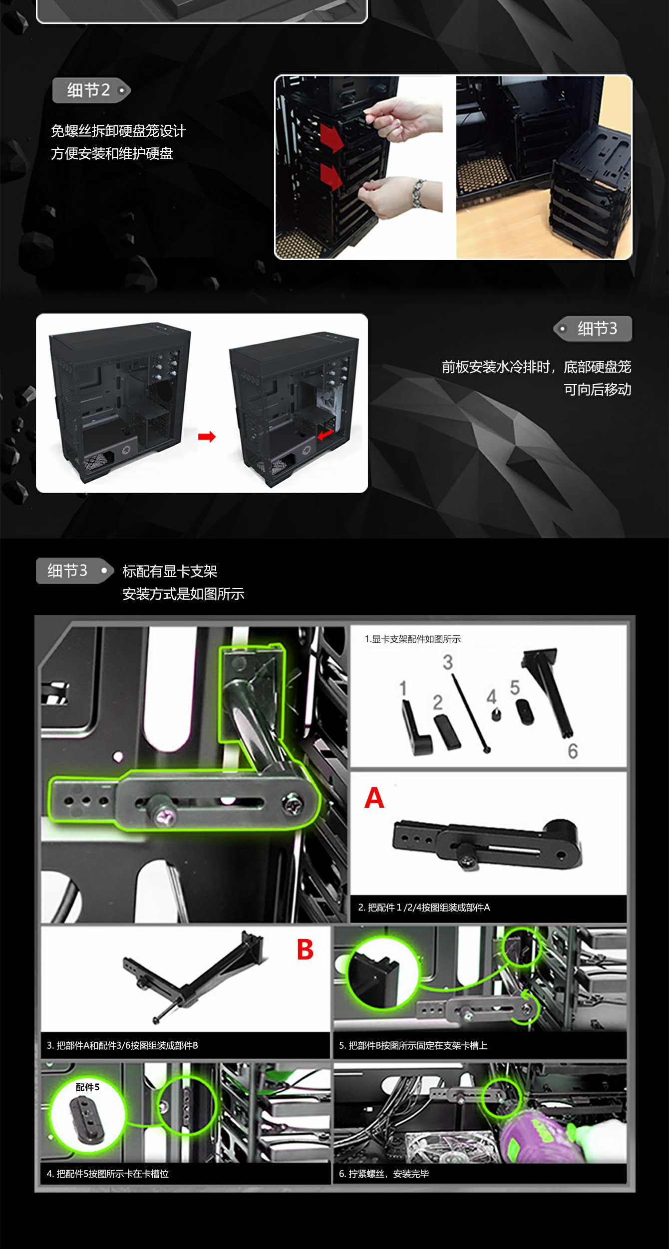 Tool-Free- 2x(3.5 or 2.5)HDD tool free brackets+2x2.5 extra cage