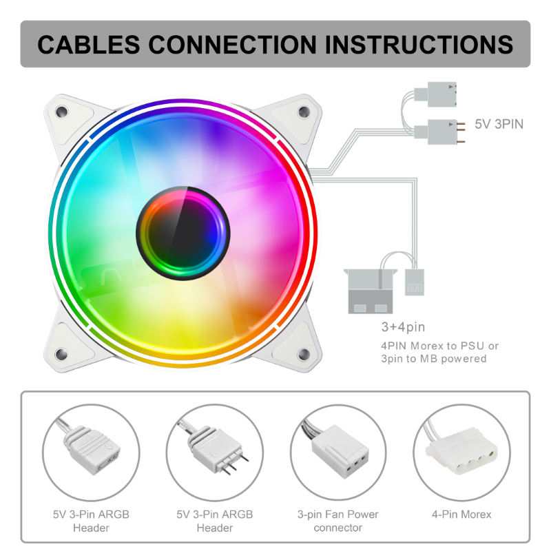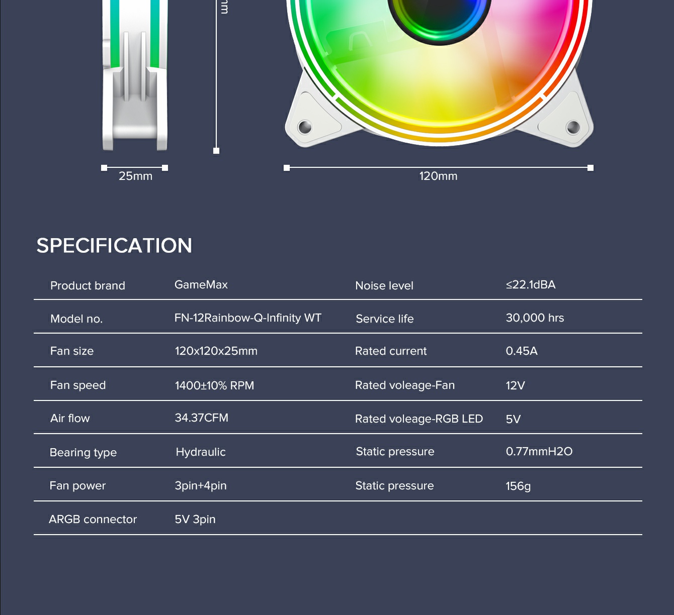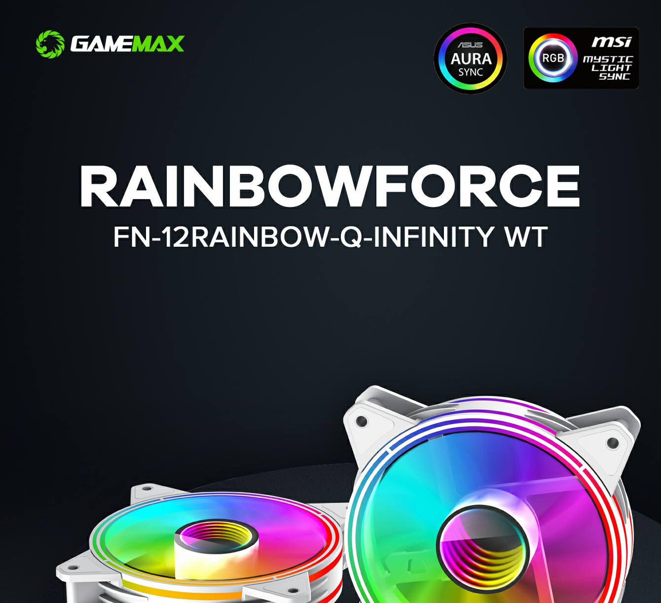• With the even increasing need for the cooling of computer components, due to the increased performance, the FN-12RAINBOW-Q-Infinity gives user an affordable solution, the built in LEDs allow you with the customization of your computer system via AURA SYNC or HUB controller, The Rainbow is an ideal upgrade to help cool various components within your computer, simply attach to a suitable CPU cooler to the chassis or to replace the fans on your water-cooling radiator.