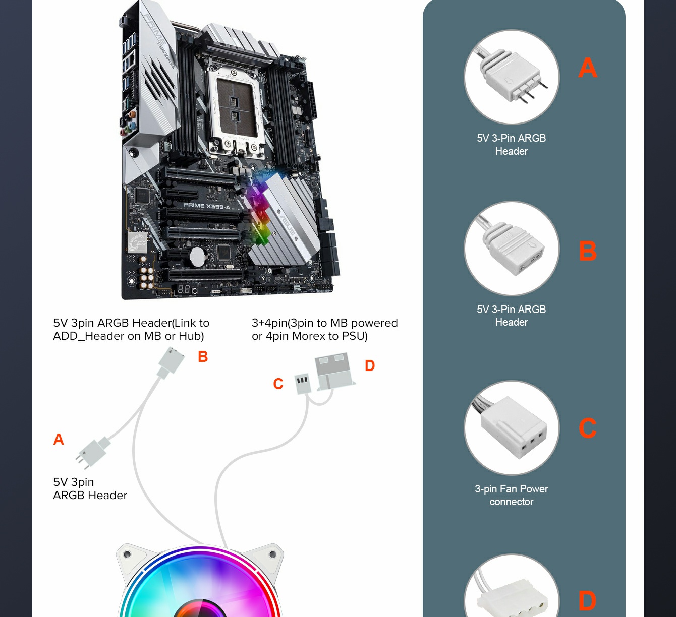 | Connectors: | ARGB 3pin 5V Header (M/F) 3pin+Morex Power |