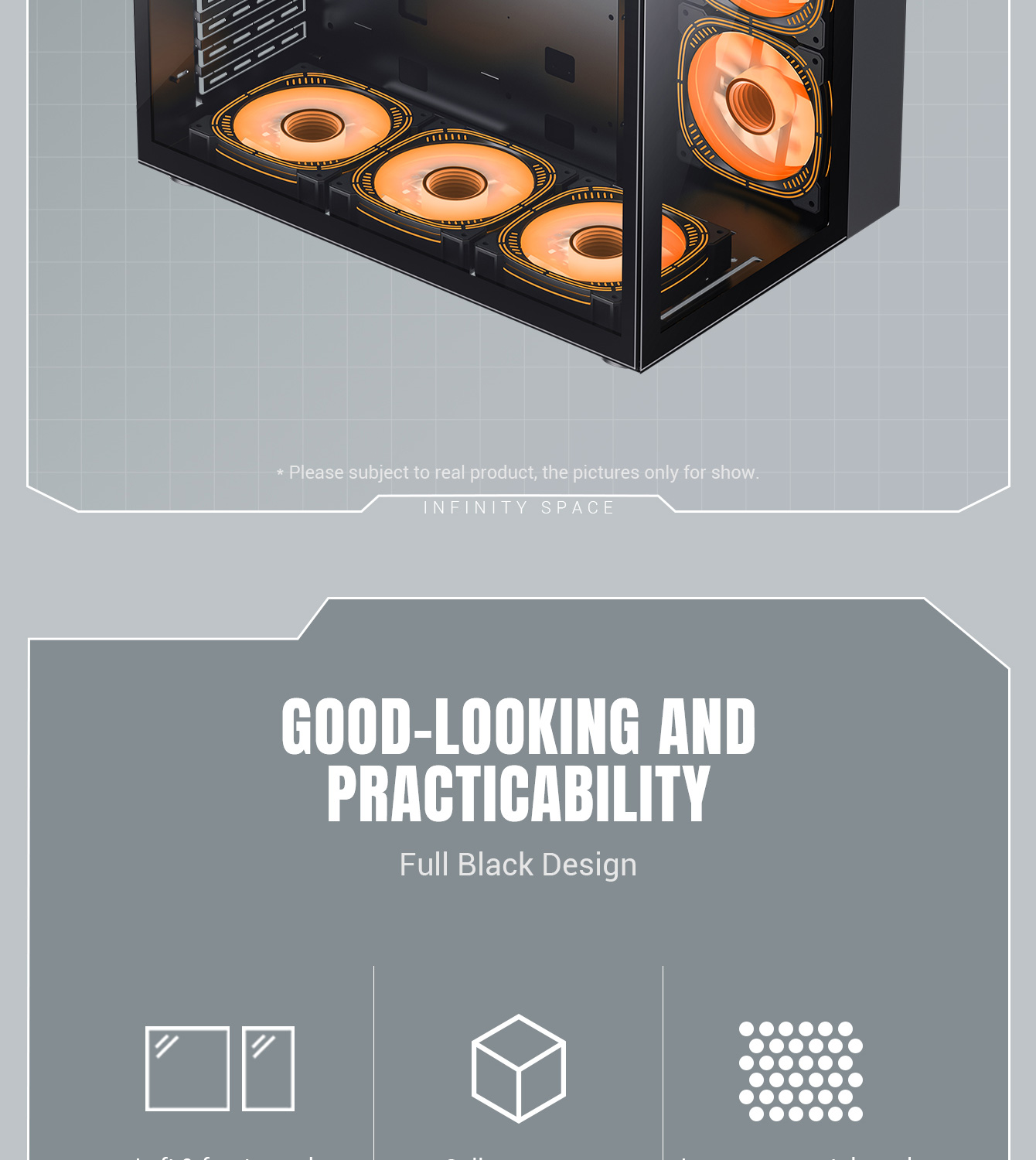 • Efficient I/O & Cable Management,Includes USB 3.0, Type-C, HD Audio ports, and 34mm cable management for a clean build.