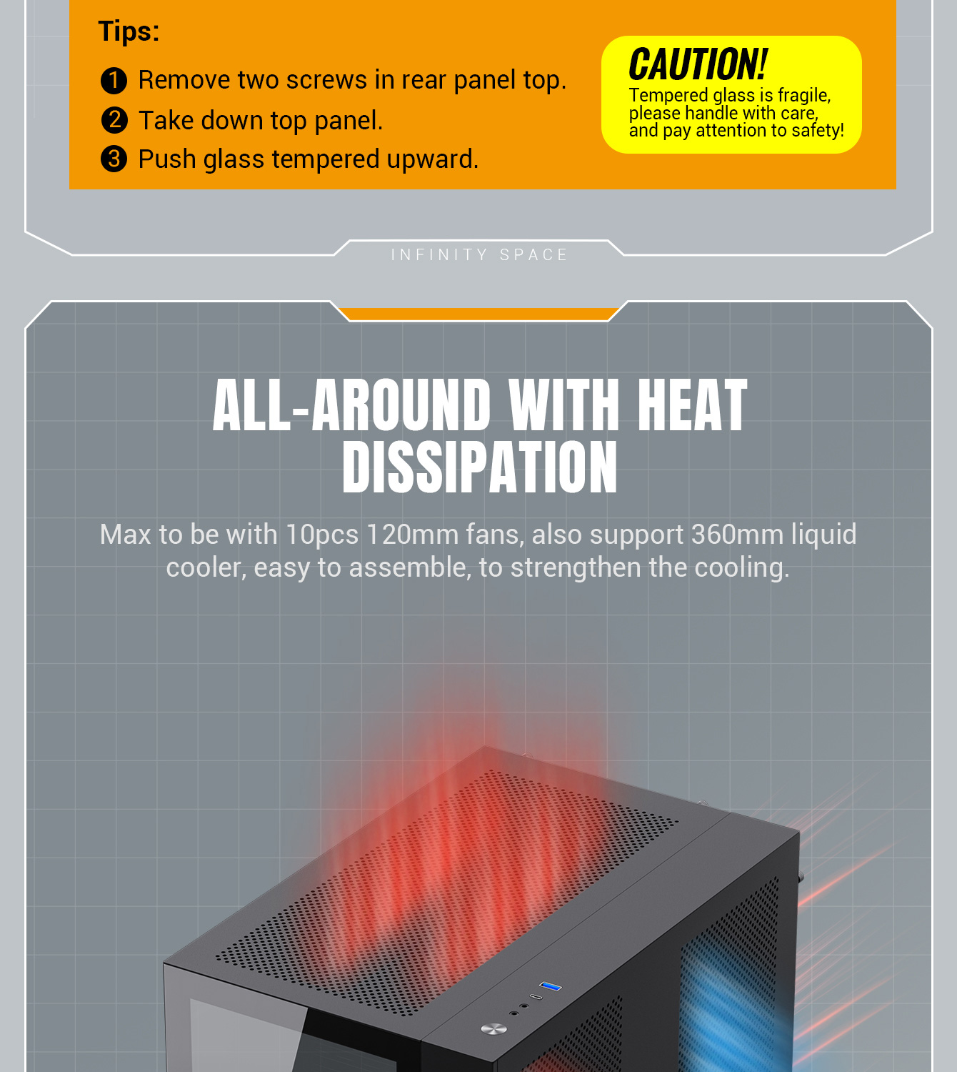 • Superior Cooling & Water Cooling,Supports 360mm radiators on the top, bottom, and motherboard for efficient cooling.