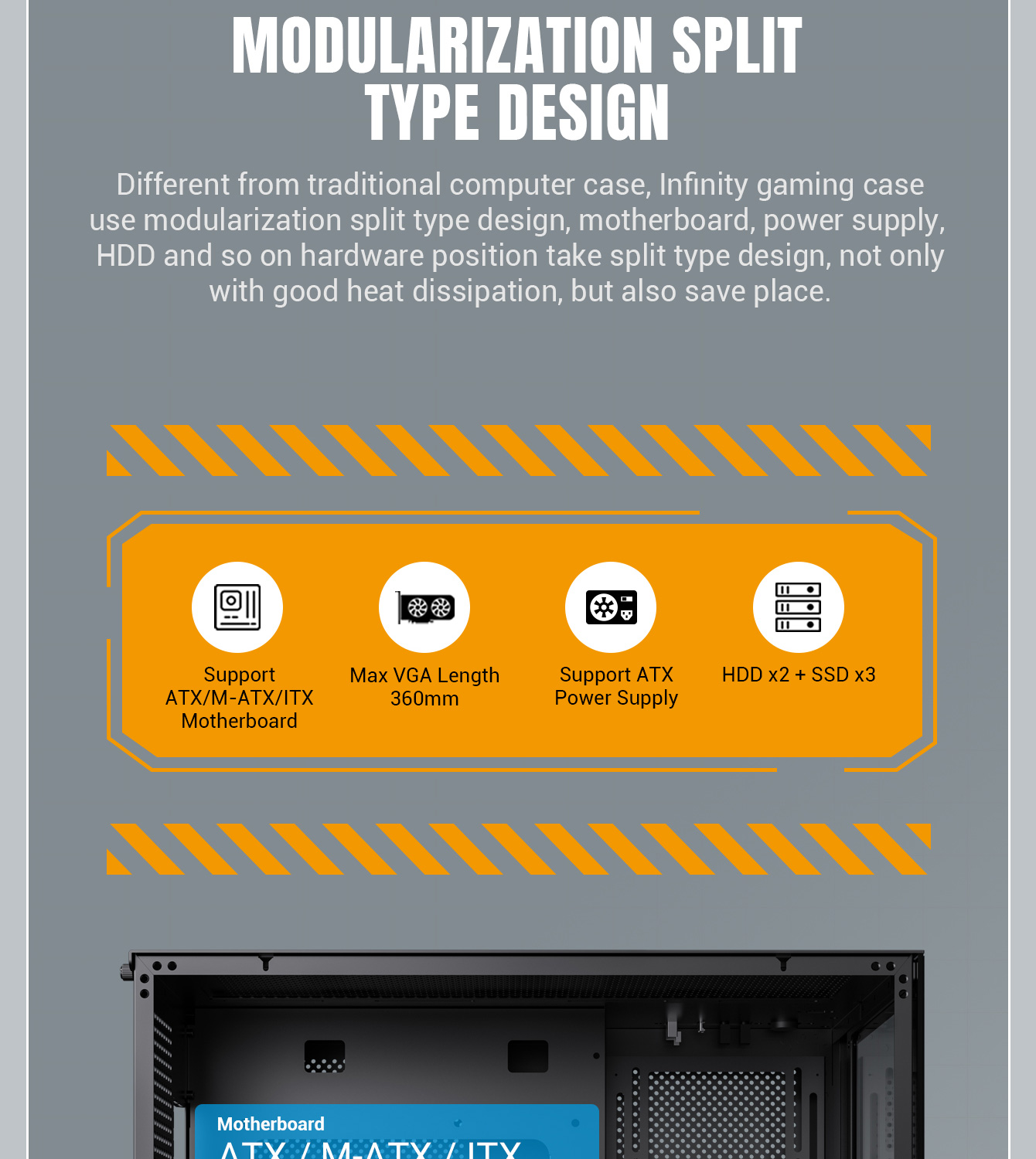 • Modular Design & Expandability,Supports ATX, Micro-ATX, and Mini-ITX motherboards with flexible hardware configuration options.