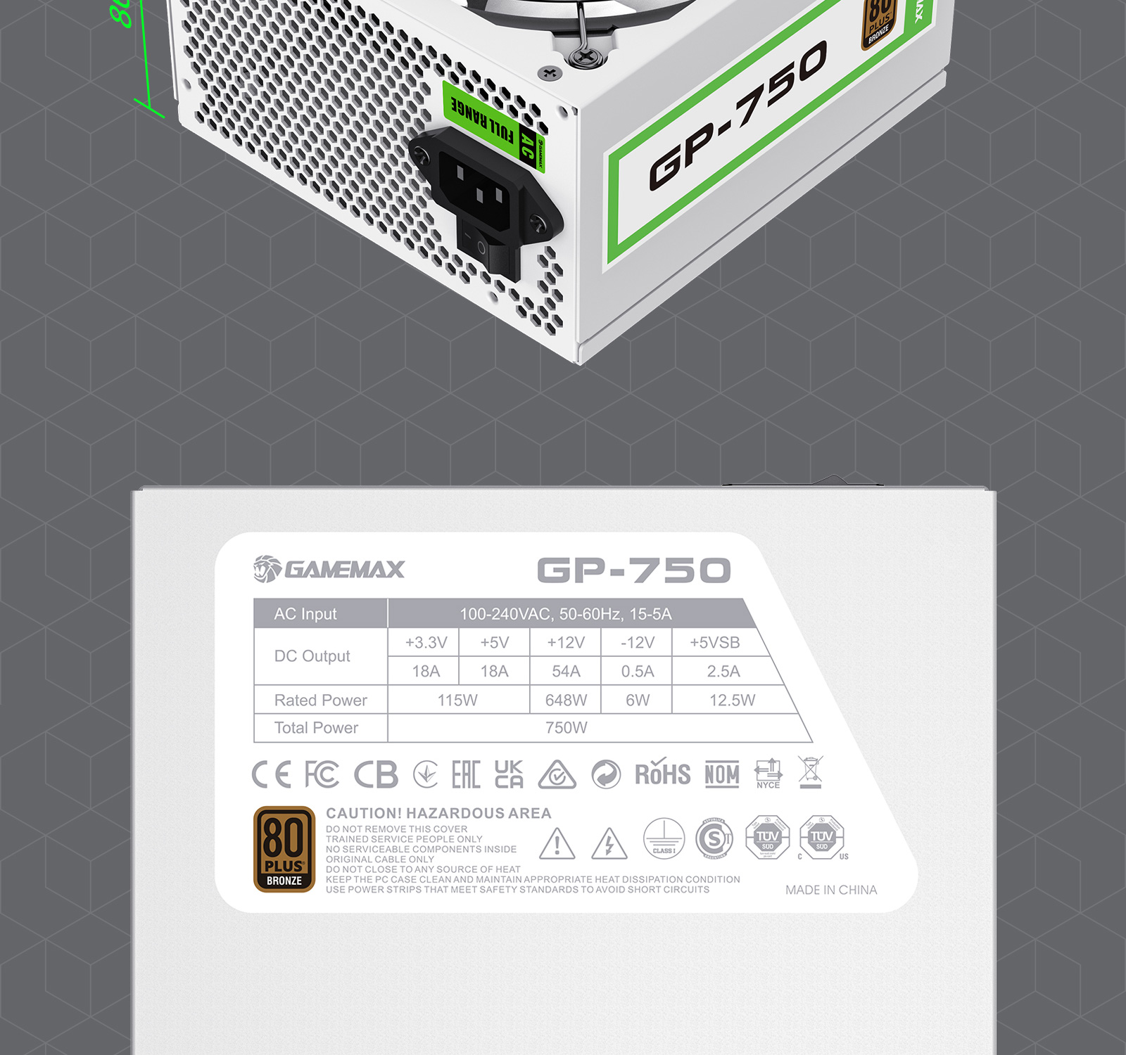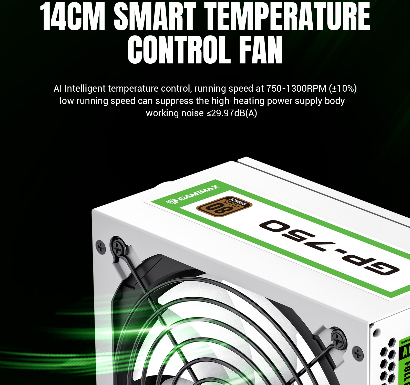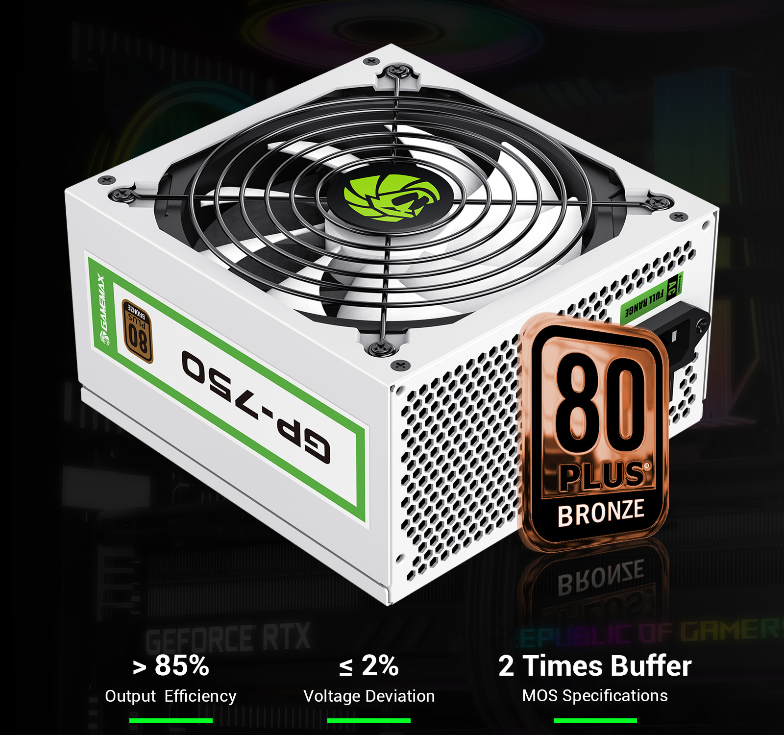 GameMax 80 plus Bronze Certified GP-750 None-Modular PSU features a cut-edge DC-to-DC design, Provides high-performance business and gaming build, and experiences gaming Bliss with the GP-750 power supply!