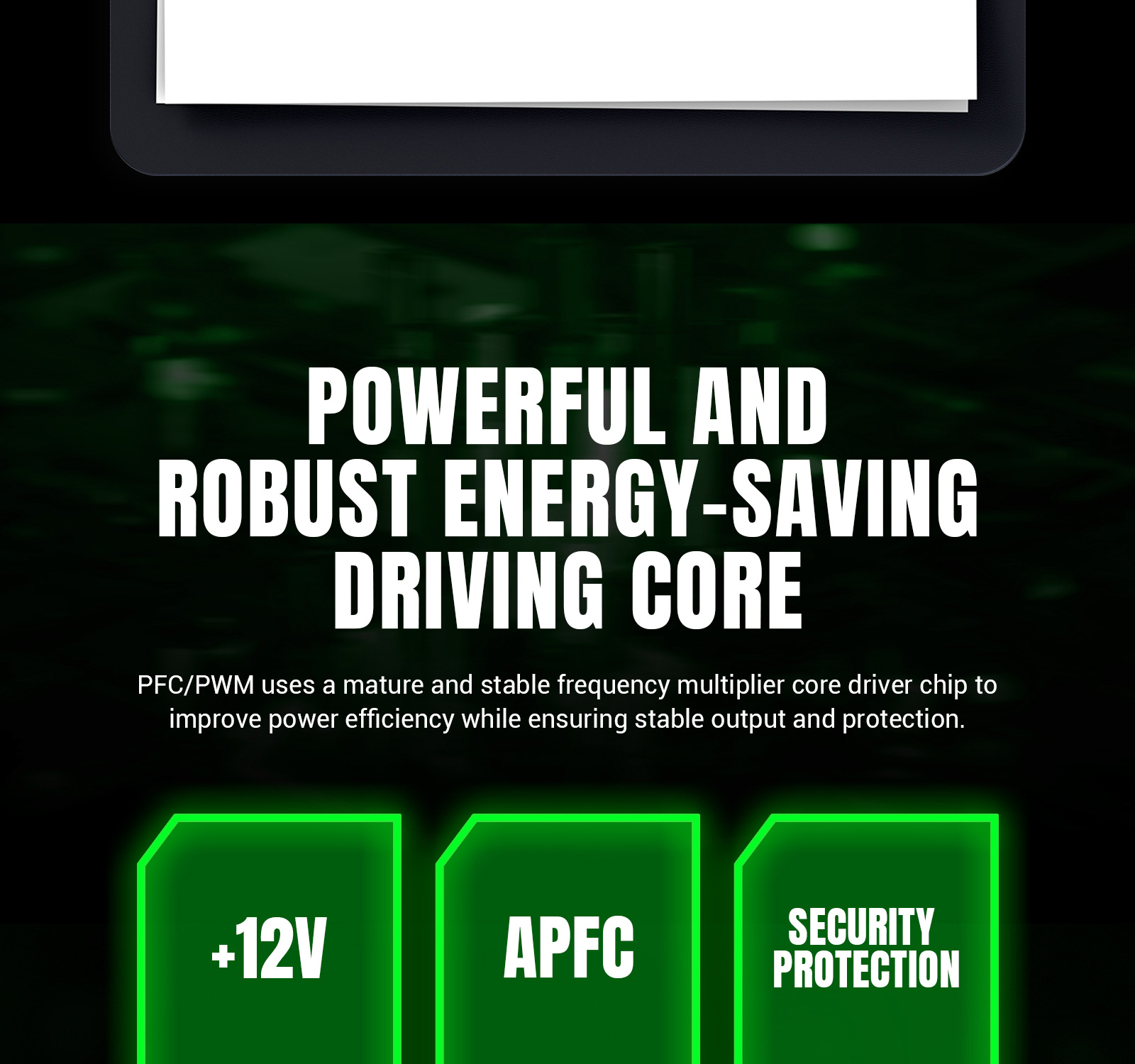 • Features six essential safety mechanisms providing system stability with OVP/UVP/ OPP/OCP/OTP/SCP.