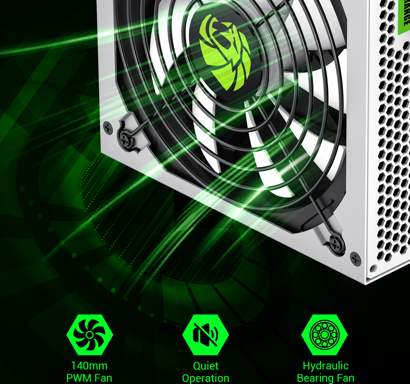 • Engineered with high-end components, Elegant black PSU casing with white flat cable.